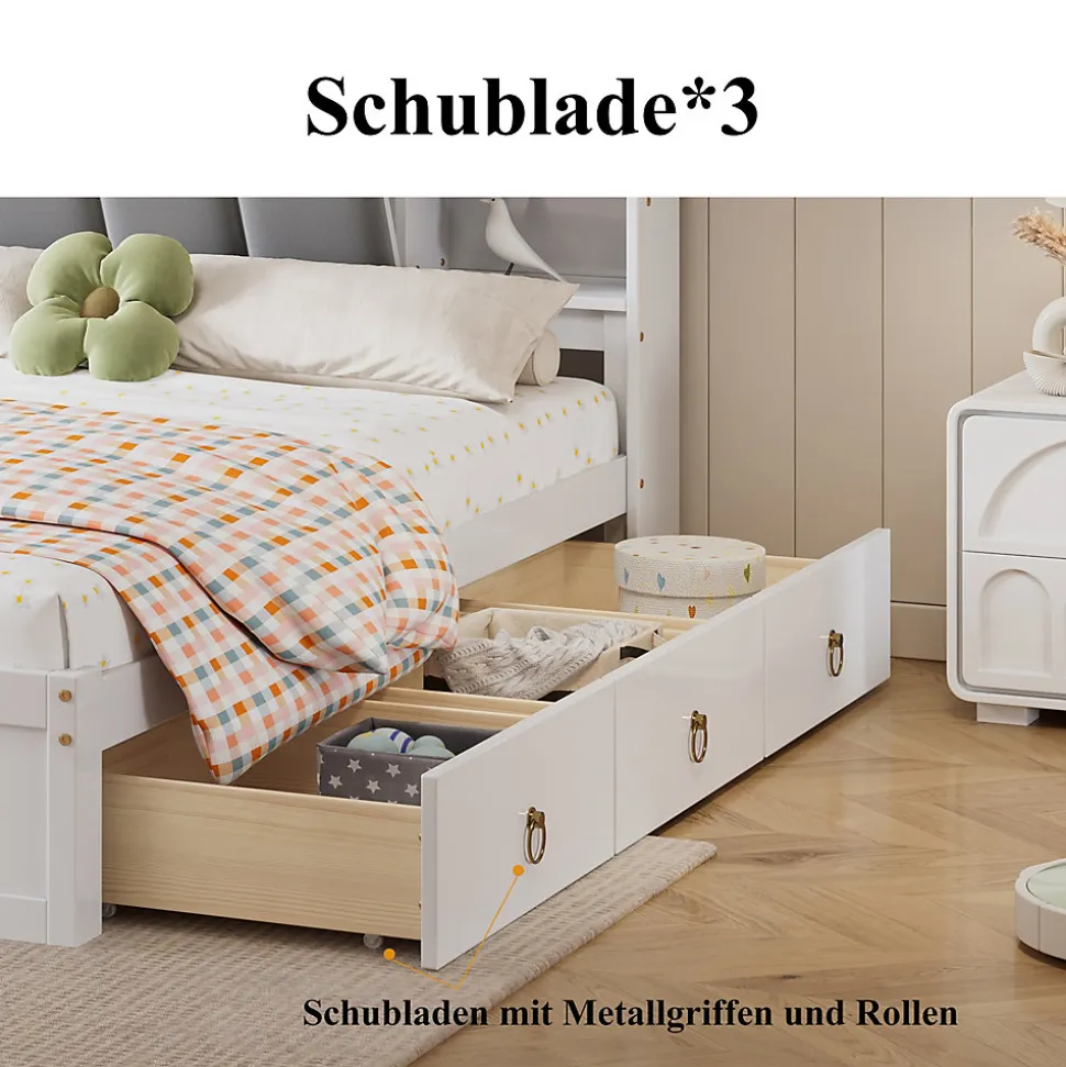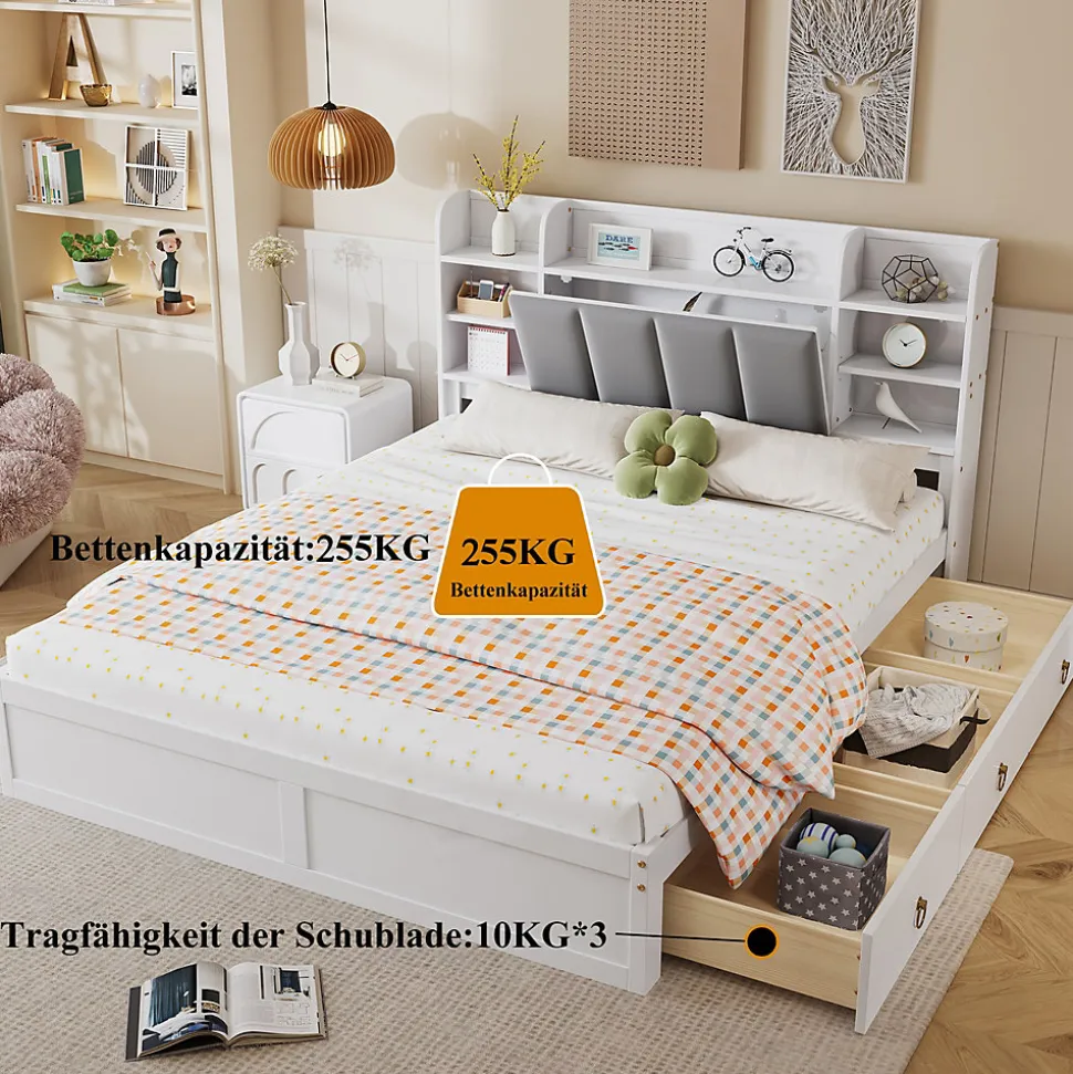 - 【Trois tiroirs pratiques】 Avec deux tiroirs latéraux interchangeables et un tiroir sous le lit sur roulettes, le rangement devient simple et modulable, permettant de garder la chambre organisée et d’optimiser l’espace disponible.