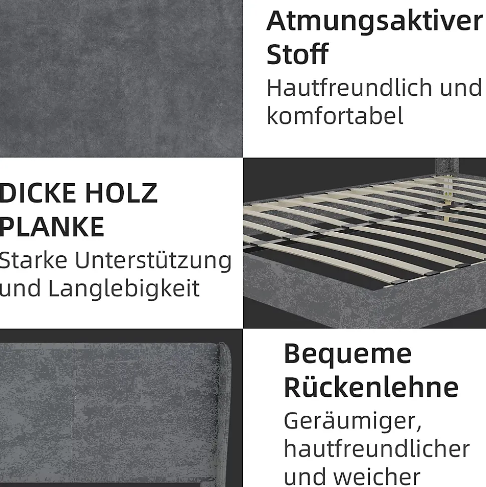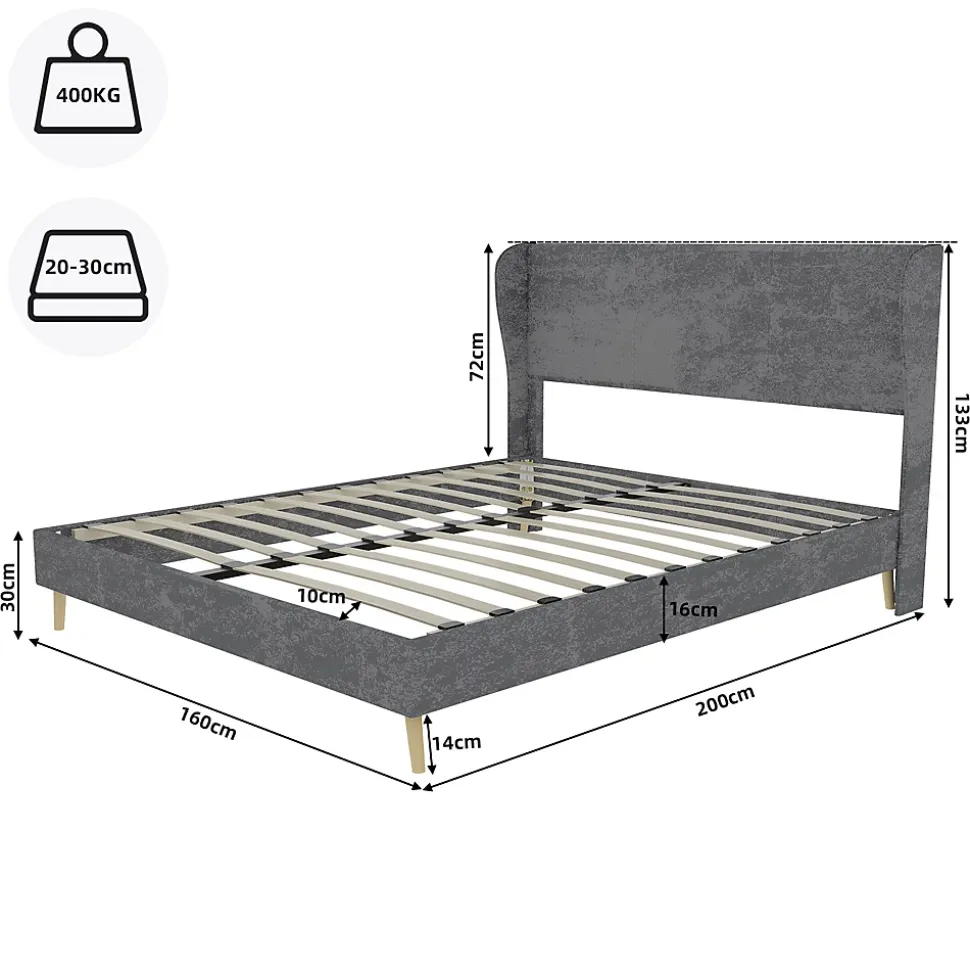 ▶ ▶ Détails ▶────────────────● Type de produit : Lit double● Matériau : Tissu (velours néerlandais) + Métal● Couleur : Gris● Dimensions du produit : 200 × 160 × 133 cm● Poids du produit : 27,50 kg● Nombre de colis : 2● Type : Cadre de lit avec cadre bas (pas de cadre de rangement), tête de lit douce, sans matelas● Rembourrage : Mousse à mémoire de forme● Matériau du cadre : Matériau composite► Remarques ►※ Toutes les dimensions sont approximatives.※ En raison des conditions d’éclairage, des variations de couleur peuvent apparaître entre les images du produit et le produit réel.※ Vérifiez les dimensions avant l’achat pour vous assurer que le produit s’adapte à votre espace.