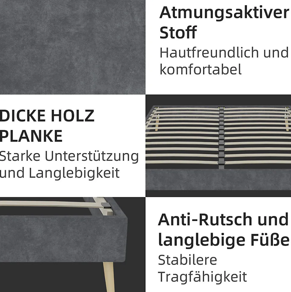 - 【Matériaux Haut de Gamme】 Revêtu de tissu Hollandwool doux et agréable pour la peau et combiné à une structure en bois robuste, ce lit allie esthétique noble et confort durable pour votre bien-être.