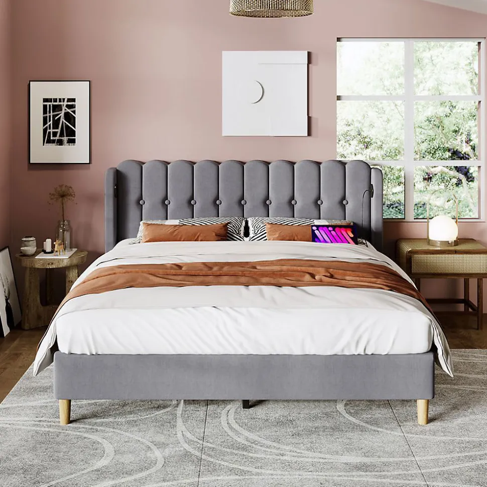 Lit double 160×200 cm avec recharge USB-C – GrisDimensions:Produit: 173x208x103 cm (LxPxH)Surface couchage: 160×200 cmPoids max: 217 kgFonctionnalités: ✔ Recharge intégréePorts USB + Type-C latérauxAccès facile depuis le lit✔ Confort premiumTête de lit rembourrée en lin douxDesign contemporain avec grilleCaractéristiques:Structure robuste en lin grisSommier à lattes inclusHauteur pieds: 25 cmLivraison: 2 colis:132,7×33,8×16 cm (19,6 kg)169x54x10,5 cm (21,3 kg)Montage:Notice incluseAssemblage facileRemarques:Poids total: 37,5 kgMatelas non inclus