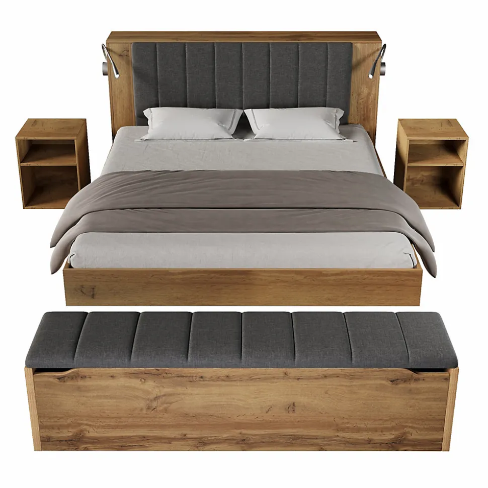 ▶ ▶ Détails ▶────────────────✦ Type de produit : Lit double✦ Matériau : Métal + MDF + lin✦ Couleur : Chêne✦ Matelas compatible (non inclus) : 180 × 200 cm✦ Dimensions totales (L × l × H) : 250 × 260–270 × 105 cm✦ Épaisseur de matelas recommandée : 25 cm✦ Charge maximale du cadre de lit : 300 kg✦ Charge maximale de la banquette : 200 kg✦ Espace de rangement sous le lit : 19 cm✦ Montage requis : Oui✦ Poids net : 90,4 kg✦ Nombre de colis : 4► Remarques ►※ En raison de mesures manuelles, un écart de 2 à 3 cm peut se produire.※ Les images du produit sont prises à partir du produit réel, des variations de couleur peuvent apparaître selon l’éclairage.※ Le produit est livré en 4 colis qui peuvent arriver à des dates différentes.