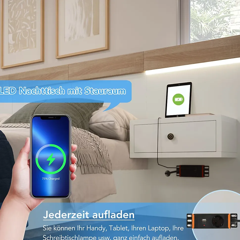 - 【Flottaison Visuelle】 Barre transversale discrète qui crée un effet visuel de lévitation, insufflant modernité et légèreté à votre espace nuit.