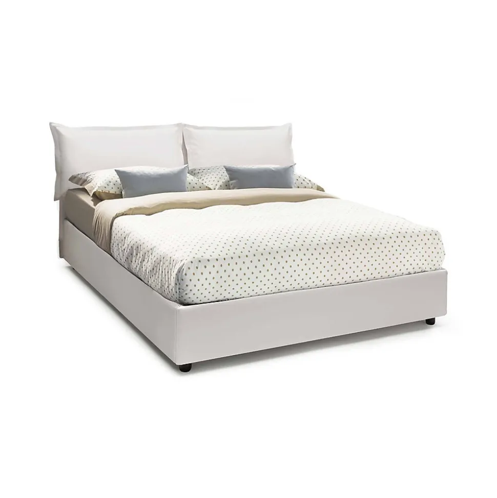 LIT DOUBLE – Lit coffre avec revêtement en similcuir, 100% Made in Italy, Ouverture frontale, avec matelas 140×200 cm inclus, Blanc. STRUCTURE – La structure du lit double français est en fibre de bois surélevée du sol avec des pieds en ABS et est recouverte de similicuir lavable avec un chiffon humide – La tête de lit linéaire assortie en similicuir avec coutures apparentes est solide et résistant – Le sommier à lattes en contreplaqué est inclus dans la structure – Mécanisme d’ouverture en fer – L’ajout du pratique coffre de rangement peu encombrant permet de transformer le lit en un coffre spacieux pour draps, oreillers et couettes. MADE IN ITALY – L’article est produit en Italie, avec l’utilisation des meilleurs matériaux et la plus haute qualité et attention aux détails – Le soin des processus de production est synonyme de fiabilité, de résistance et de raffinement – Made in Certification Italy est une garantie de pleine conformité avec la réglementation de l’Union européenne. MATELAS INCLUS – Matelas orthopédique amovible, anatomique et climatisé avec double support mesurant 140×200, hauteur 21 cm – Structure en polyuréthane expansé solide h 17 cm, densité 30EP recouverte de mousse viscoélastique à mémoire de forme h 2 cm, densité 55EP taille diamant en partie haute – Revêtement en tissu stretch 130 g, déhoussable et lavable en machine à 60° – Rembourrage 100% fibre polytechno, hypoallergénique et anti-acarien des deux côtés – Equipé d’une bande tri-space respirante avec zip et poignée en tissu – Article certifié OekoText. MESURES ET OUVERTURE – Dimensions du lit: Longueur 215 x Largeur 155 x Hauteur 95 cm (hauteur du sommier depuis le sol: 32cm) – Ouverture du conteneur: avant – Profondeur du conteneur: 20 cm environ – Hauteur des pieds: 10 cm environ – Fond de lit en mélamine d’une épaisseur de 1 cm – Dimensions matelas: 140×200 cm