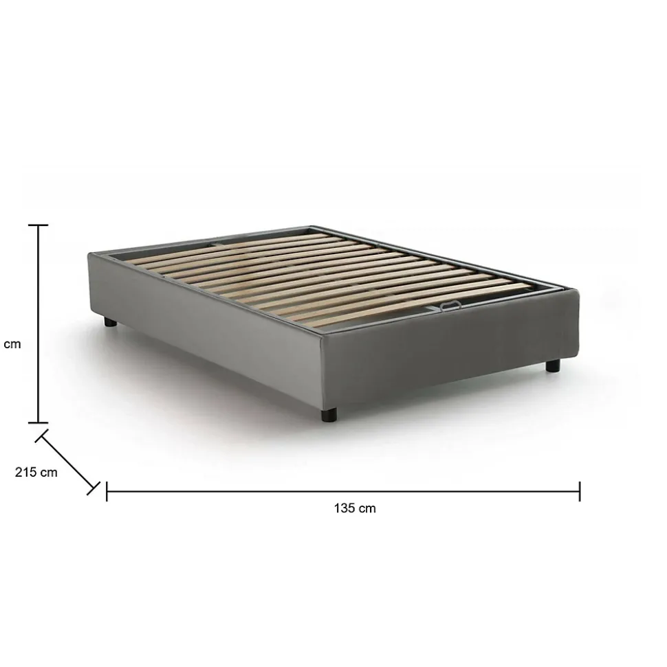 LIT CARRÉ ET DEMI-LIT – Lit coffre avec revêtement en tissu, 100% Made in Italy, Ouverture frontale, adapté pour matelas 120×200 cm, Gris. STRUCTURE – La structure du lit est en fibre de bois surélevée du sol avec pieds en ABS: le cadre du lit est recouvert de tissu polyester doux, déhoussable et lavable en machine à 30° – Le sommier à lattes en contreplaqué est inclus dans la structure – Mécanisme d’ouverture en fer – Le l’ajout du coffre de rangement pratique et peu encombrant permet de transformer le lit en un coffre spacieux pour les draps, les oreillers et les couettes. MADE IN ITALY – L’article est produit en Italie, avec l’utilisation des meilleurs matériaux et la plus haute qualité et attention aux détails – Le soin des processus de production est synonyme de fiabilité, de résistance et de raffinement – Made in Certification Italy est une garantie de pleine conformité avec la réglementation de l’Union européenne. ASSEMBLAGE – Le montage est simple et rapide: grâce aux outils de montage fournis en kit avec le produit et le livret d’instructions vous pourrez assembler votre produit en quelques minutes – Article certifié OekoText. MESURES ET OUVERTURE – Dimensions du lit: Longueur 215 x Largeur 135 x Hauteur 32 cm (hauteur du sommier depuis le sol: 32cm) – Ouverture du conteneur: avant – Profondeur du conteneur: 20 cm environ – Hauteur des pieds: 10 cm environ – Fond de lit en mélamine d’une épaisseur de 1 cm – Convient pour matelas de taille: 120×200 cm – Matelas non inclus