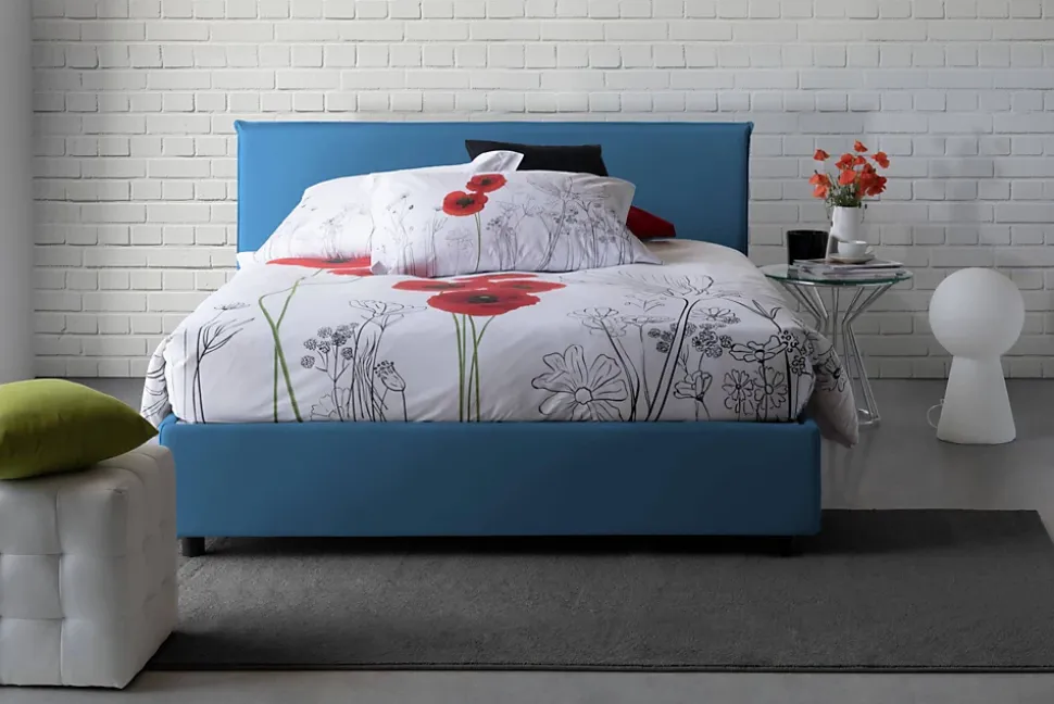 LIT DOUBLE – Lit coffre avec revêtement en tissu, 100% Made in Italy, Ouverture frontale, adapté pour matelas 160×200 cm, Bleu. STRUCTURE – La structure du lit est en fibre de bois surélevée du sol avec des pieds en ABS et est recouverte de tissu polyester doux, déhoussable et lavable en machine à 30° – La tête de lit linéaire assortie en tissu est solide et résistante – Les lattes en bois Multicouche sont incluses dans la structure – Mécanisme d’ouverture en fer – L’ajout du coffre de rangement pratique et peu encombrant permet de transformer le lit en un coffre spacieux pour draps, oreillers et couettes. MADE IN ITALY – L’article est produit en Italie, avec l’utilisation des meilleurs matériaux et la plus haute qualité et attention aux détails – Le soin des processus de production est synonyme de fiabilité, de résistance et de raffinement – Made in Certification Italy est une garantie de pleine conformité avec la réglementation de l’Union européenne. ASSEMBLAGE – Le montage est simple et rapide: grâce aux outils de montage fournis en kit avec le produit et le livret d’instructions vous pourrez assembler votre produit en quelques minutes – Article certifié OekoText. MESURES ET OUVERTURE – Dimensions du lit: Longueur 215 x Largeur 175 x Hauteur 95 cm (hauteur du sommier depuis le sol: 32cm) – Ouverture du conteneur: avant – Profondeur du conteneur: 20 cm environ – Hauteur des pieds: 10 cm environ – Fond de lit en mélamine d’une épaisseur de 1 cm – Convient pour matelas de taille: 160×200 cm – Matelas non inclus