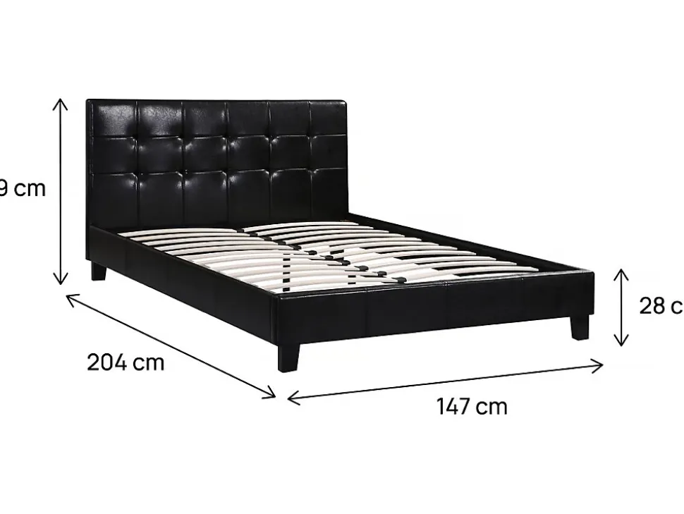 Lit « Julia »Ce lit en PVC à la finition brillante joint style, esthétique et qualité.Avec sa tête de lit capitonnée et ses dimensions généreuses, le modèle « Julia » saura vous séduire et s’inclura parfaitement à la décoration de votre chambre à coucher.Son design chic et son confort vont faire de ce lit l’élément-clé de votre chambre et vous donneront envie de prolonger votre nuit. Lit adulte double « Julia » 2 personnes – Noir – Dimensions lit : 204 x 147 x 89 cm – Dimensions matelas : 140 x 190 cm – Tête de lit capitonnée – Sommier inclus – Finition brillante – En PVC .Descriptif: Le lit double Julia possède une magnifique tête de lit – 140 x 190 cm – Ce lit est fourni avec un sommier – Sa couleur noir se marie avec tous les décors – Livré sans matelas.Matière(Filtre): Simili cuirMatières: Simili cuirCouleurs: noirFinition: Finition en PU (polyuréthane) – PVC brillantcouleur (filtre): NoirDimensions: 204 x 147 x 89 cmDimensions du couchage: 140 x 190 cmDimensions (Filtre): 140 x 190 cmSommier: Dimensions lattes : 70.9 x 5.3 x 0.9 cm Nombre de lattes : 24 – Contreplaquépieds: Dimensions : 6,5 x 3,3 x 20 cm Nombre de pieds : 6 dont 2 sous sommier BoisPoids: 30 kgColisage: 2 colis : – 1,5 x 0,95 x 0,08 m, 14 kg – 2,04 x 0,2 x 0,15 m, 15 kg