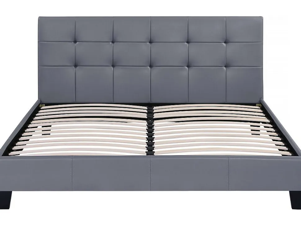 Lit « Julia »Ce lit en PVC à la finition brillante joint style, esthétique et qualité.Avec sa tête de lit capitonnée et ses dimensions généreuses, le modèle « Julia » saura vous séduire et s’inclura parfaitement à la décoration de votre chambre à coucher.Son design chic et son confort vont faire de ce lit l’élément-clé de votre chambre et vous donneront envie de prolonger votre nuit. Lit adulte simple « Julia » 2 personnes – Gris clair – Dimensions lit : 217 x 167 x 89.5 cm – Dimensions matelas : 160 x 200 cm – Tête de lit capitonnée – Sommier inclus – Finition matte – En PVC .Descriptif: Le lit double Julia possède une magnifique tête de lit – 160 x 200 cm – Ce lit est fourni avec un sommier – Livré sans matelasMatière(Filtre): Simili cuirMatières: Simili cuirCouleurs: GrisFinition: Finition en PU (polyuréthane) – PVC brillantcouleur (filtre): Gris.Dimensions: 217 x 167 x 89 cmDimensions du couchage: 160 x 200 cmDimensions (Filtre): 160 x 200 cmSommier: inclusSommier: Dimensions lattes : 80.5 x 5.3 x 0.9 cm Nombre de lattes : 26 – ContreplaquéCoffres: Dimensions lit – 217 x 167 x 89.5 cm Dimensions du matelas: 160 x 200 cm Hauteur de couchage : 28 cmpieds: Dimensions : 7.5 x 3.5 x 0.9 cmPoids: 35 KgColisage: 2 colis : – 1,7 x 0,95 x 0,08 m, 18 kg – 2,25 x 0,2 x 0,15 m, 16 kg