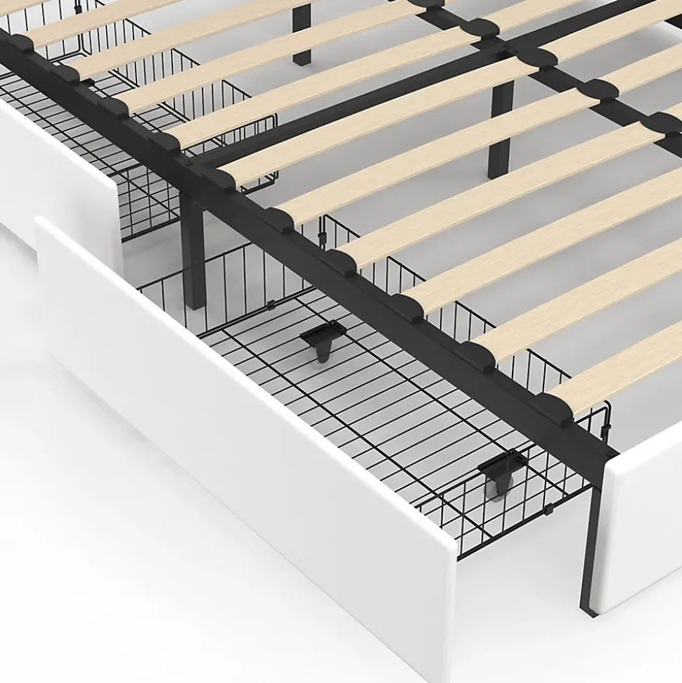 Optimisez votre espace de façon astucieuse avec ce lit multi-usage MAEL blanc 140 x 190 cm ! Équipé de 2 tiroirs intégrés sous le sommier, ce lit est idéal pour les petits espaces ! Vous pourrez facilement y entreposer votre nécessaire de nuit, pyjamas ou livres de chevet mais aussi vos couettes, couvertures ou vos draps. Ce lit MAEL allie fonctionnalité et praticité pour vous permettre de conserver une chambre toujours bien rangée ! Ce lit avec rangement s’intégrera parfaitement à votre intérieur. Grâce à la pureté de ses lignes et à son coloris blanc, il apportera une touche de fraîcheur et de luminosité à votre chambre à coucher. Décorez et aménagez facilement votre chambre avec une touche élégante et moderne ! Ce lit se distingue par sa tête de lit capitonnée en PU blanc, réglable en hauteur (112 à 121 cm), qui apporte une touche cosy et raffinée à votre intérieur. Intégrant 2 liseuses avec prises intégrées, il vous permet de lire confortablement installé, sans occuper l’espace de votre table de chevet. Sa taille de 140 x 190 cm conviendra parfaitement pour un matelas standard double. De plus, son sommier, composé de 24 lattes, vous offrira un soutien optimal pour votre matelas et un meilleur confort pendant votre sommeil. Vous allez aimer faire la grasse matinée dans ce lit moderne et confortable !Élégant, ce lit se compose d’une grande tête de lit capitonnée d’une hauteur de 90 cm (à partir du sol), d’un cadre de lit et d’un large pied de lit afin de garantir plus de stabilité. À la fois pratique et esthétique, ce lit saura trouver sa place dans votre chambre à coucher ou dans une chambre d’amis pour un espace nuit toujours ordonné. N’attendez plus et optez pour ce lit MAEL blanc qui a tout pour lui, avec ses 2 tiroirs, sa tête de lit, ses deux liseuses et son sommier 140 x 190 cm inclus ! Dimensions du lit double MAEL 140x190cm blanc 2 tiroirsDimensions globales : Longueur 201 cm x largeur 145 cm x Hauteur 121 cmHauteur du cadre de lit : 29 cmHauteur de la tê