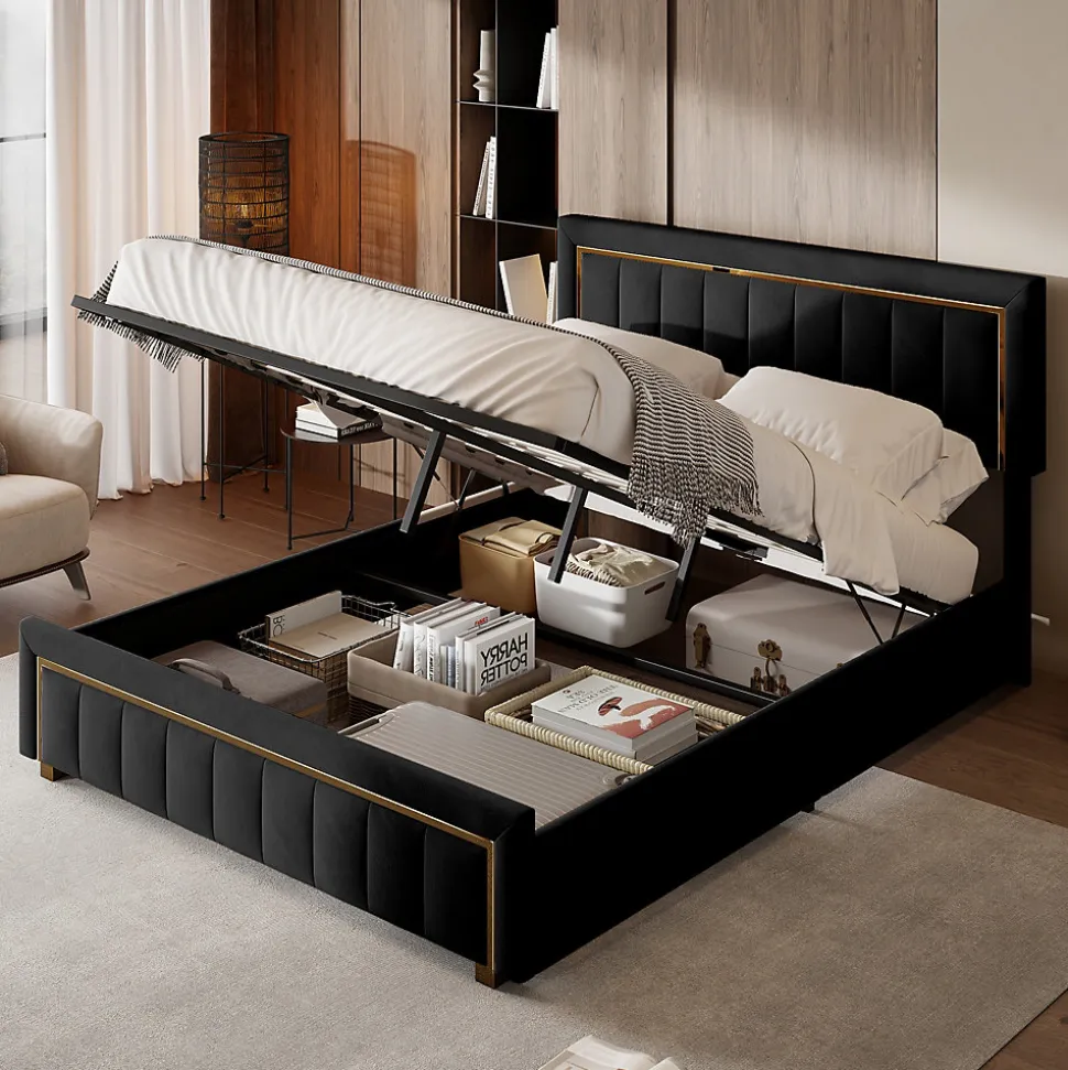 DescriptionAlliez confort et élégance avec ce lit rembourré en velours de haute qualité, disponible en 140 x 200 et 160 x 200 cm. La tête et le pied de lit présentent un design artistique en saule, ajoutant une touche unique et raffinée à votre chambre.Matériau doux et pratique – Le velours de qualité supérieure est doux pour la peau, chaleureux et facile à nettoyer, assurant un sommeil confortable et une chambre accueillante.Rangement spacieux – L’espace sous le lit, équipé de ressorts, offre un grand volume pour ranger literie, oreillers et autres objets, optimisant l’utilisation de l’espace et maintenant la chambre bien rangée.Structure stable et durable – Cadre combinant lattes en métal et bois massif, supportant jusqu’à 250 kg, garantissant sécurité et durabilité pour un sommeil paisible.Livraison et assemblage simplifiés – Expédié en 2 colis pour faciliter le transport, avec instructions claires pour un assemblage rapide et facile.Informations produit :Dimensions totales : L 214 x l 167 x H 111 cmDimensions intérieures : 160 x 200 cmMatériau : velours + bois massif + métalCapacité de charge : 250 kgMatelas non inclusAssemblage requisDisponible en deux tailles : 140 x 200 et 160 x 200 cmCe lit combine design artistique, confort, rangement pratique et robustesse, offrant une solution élégante et fonctionnelle pour votre chambre.