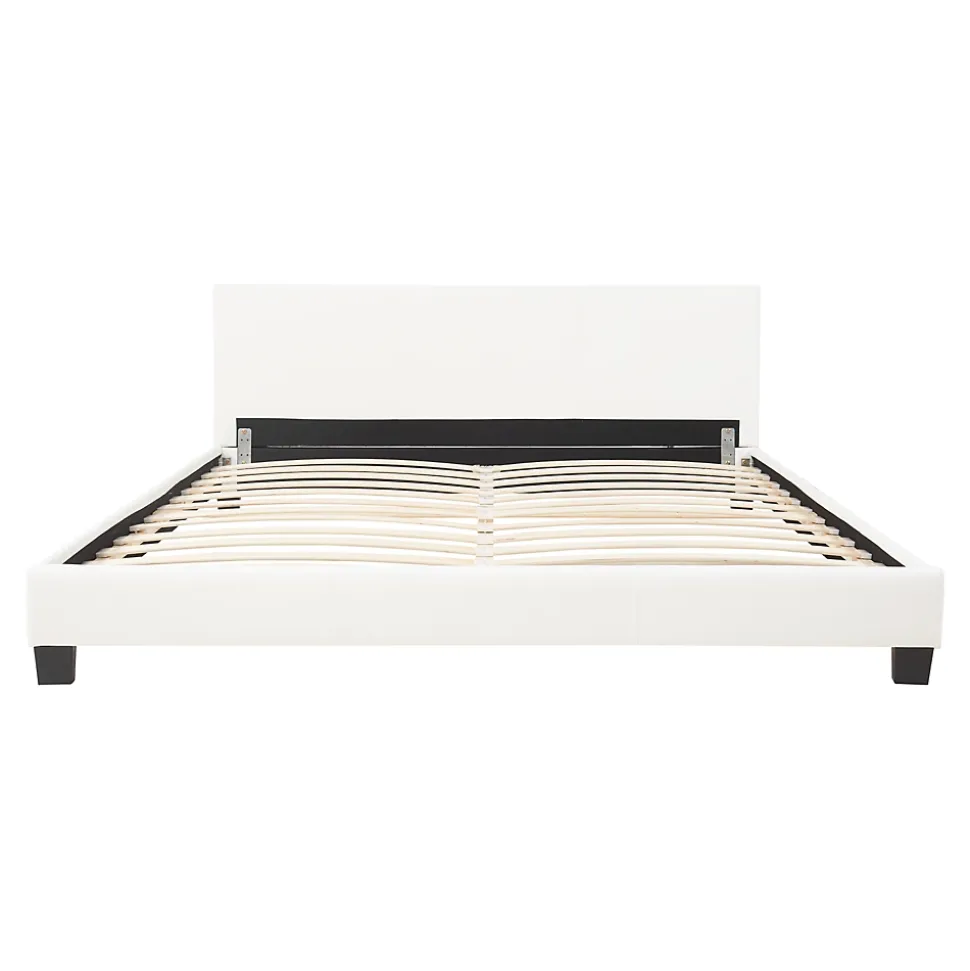 Lit double rembourréCe lit double élégant sera le choix parfait pour votre chambre gâce à son rembourrage en similicuir de qualité et sa forme arrondie.Description :- construction robuste- montage facileMatière : PU similicuir matCouleur : blancDimensions totales (lo x la) : ca. 210 cm x 189 cmSurface de couchage (lo x la) : 200 cm x 180 cmHauteur de tête de lit : 78 cmContenu de la livraison :1 x lit double1 x sommier à lattesLe matelas, l’oreiller, la couverture et les objets déco ne font pas partie de l’offre. Produit de la marque Corium.