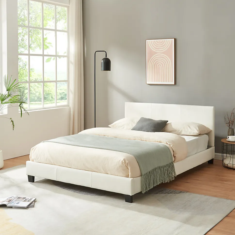 - Ce lit double élégant sera le choix parfait pour votre chambre grâce à son rembourrage en similicuir de qualité et sa forme arrondie.