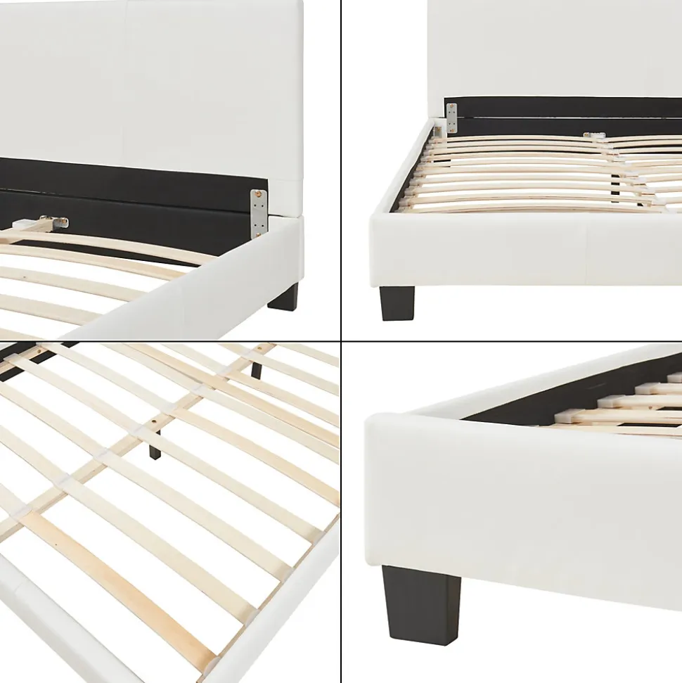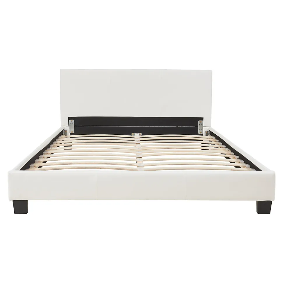 Lit double rembourréCe lit double élégant sera le choix parfait pour votre chambre gâce à son rembourrage en similicuir de qualité et sa forme arrondie.Description :- construction robuste- montage facileMatière : PU similicuir matCouleur : blancDimensions totales (lo x la) : ca. 210 cm x 149 cmSurface de couchage (lo x la) : 200 cm x 140 cmHauteur de tête de lit : 78 cmContenu de la livraison :1 x lit double1 x sommier à lattesLe matelas, l’oreiller, la couverture et les objets déco ne font pas partie de l’offre. Produit de la marque Corium.