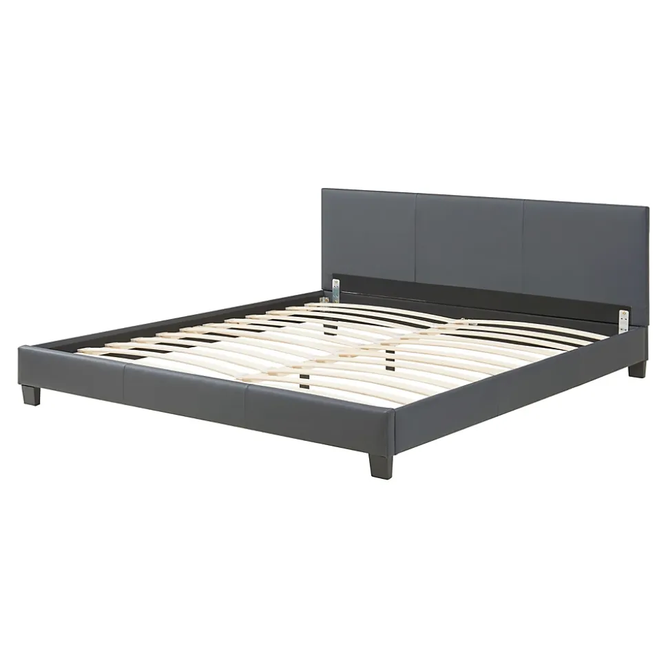 Lit double rembourréCe lit double élégant sera le choix parfait pour votre chambre gâce à son rembourrage en similicuir de qualité et sa forme arrondie.Description :- construction robuste- montage facileMatière : PU similicuir matCouleur : gris foncéDimensions totales (lo x la) : ca. 210 cm x 189 cmSurface de couchage (lo x la) : 200 cm x 180 cmHauteur de tête de lit : 78 cmContenu de la livraison :1 x lit double1 x sommier à lattesLe matelas, l’oreiller, la couverture et les objets déco ne font pas partie de l’offre. Produit de la marque Corium.