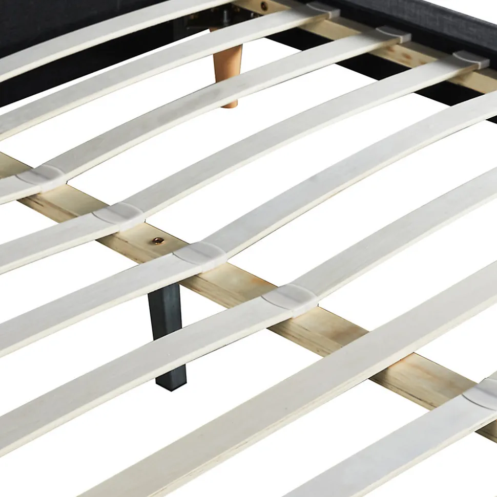 Décorez et aménagez votre chambre avec une touche venue tout droit de Scandinavie ! Offrez-vous ce lit double 140×190 cm BALTA ultra-confortable et créez une véritable ambiance cocooning dans votre chambre à coucher ou chambre d’amis.Son design scandinave aux finitions soignées habillera votre pièce avec élégance. Doté d’une jolie tête de lit au revêtement en tissu 100% polyester façon lin suédine coloris gris anthracite ! Un look minimaliste au style épuré pour un chambre classe et élégante ! Son contour de lit tout en tissu gris anthracite et ses 4 pieds en plastique imitation bois (hauteur 15 cm) biseautés lui confèrent un design sobre et moderne ainsi qu’une touche scandinave ! La densité de la mousse (240gr/m3) lui confère un aspect harmonieux. Stable et robuste, sa structure en bois MDF est renforcée par 2 pieds centraux de renfort en métal. Livré avec son sommier à 24 lattes bombées en bois tout confort, la zone lombaire est renforcée grâce au resserrement des lattes pour garantir le maintien du dos et un confort optimal. Sa forme ergonomique facilite l’aération du matelas et apporte flexibilité au couchage. Son atout charme : une tête de lit aux contours arrondis adoucis pour caler votre oreiller, apporter un soutien à votre nuque et protéger votre mur !Un lit simple qui ne surchargera pas votre pièce, aux finitions sophistiquées pour rendre votre intérieur chic et chaleureux ! Profitez d’un sommeil reposant et passez de douces nuits dans un joli lit ! Dimensions du lit double BALTA 140×190 CM- Dimensions standard pour un matelas 140 x 190 CM- Dimensions globales : Longueur 197 CM x largeur 145 CM x Hauteur 85,5 CM- Dimensions tête de lit : Longueur 145 x Hauteur 85,5 x Epaisseur 4 CM- Hauteur du cadre de lit : 28 CM- Hauteur des pieds : 15 CM- Matériaux : Bois en contreplaqué et MDF + tissu en polyester- Coloris : gris anthracite- Matelas non fourni- Livré avec sommier*Produit non livrable en CorseRetrouvez l’ensemble de nos lits adultes sur notre boutique