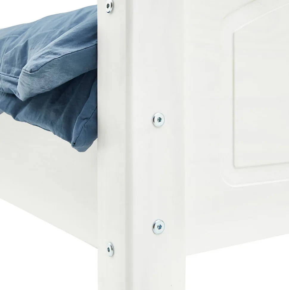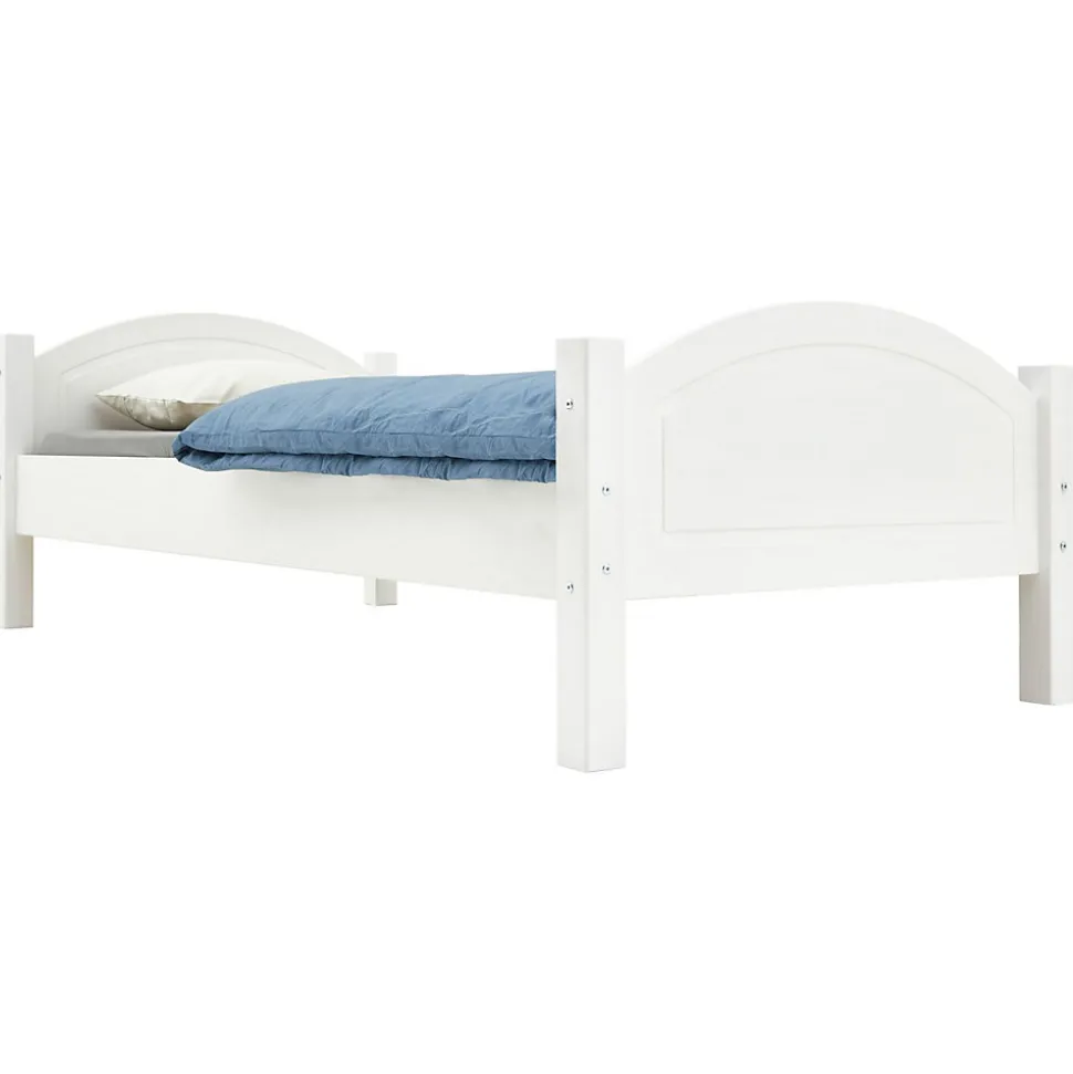 - Le cadre de lit est fabriqué en pin massif et est recouvert dune lasure de coloris blanc où la madrure du bois reste visible