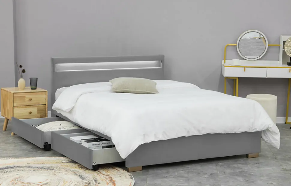 - Lit avec coffre de rangement et éclairage LED intégrés