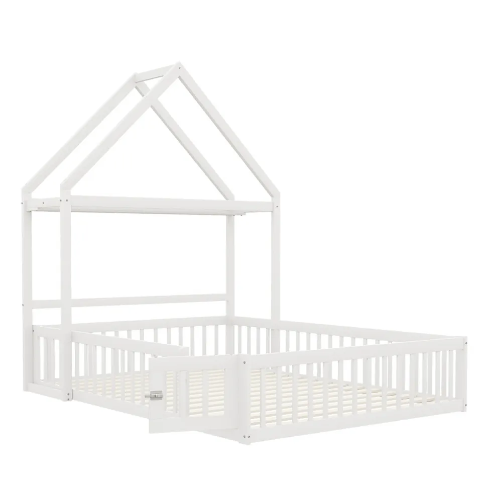 - 【Cadre Robuste et Sûr】 Construit en bois massif, le lit intègre un garde-corps complet et une petite porte fonctionnelle, garantissant un environnement sûr et stable tout en rendant le lit ludique et attrayant pour les enfants.