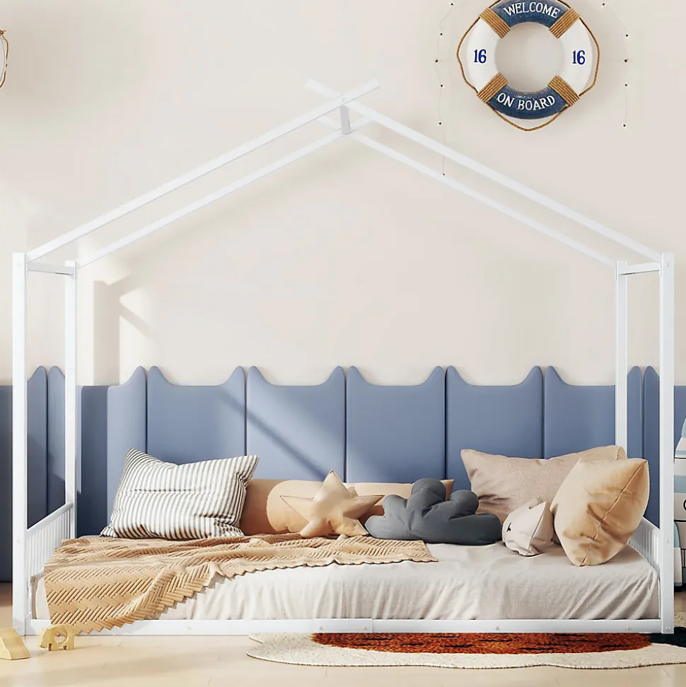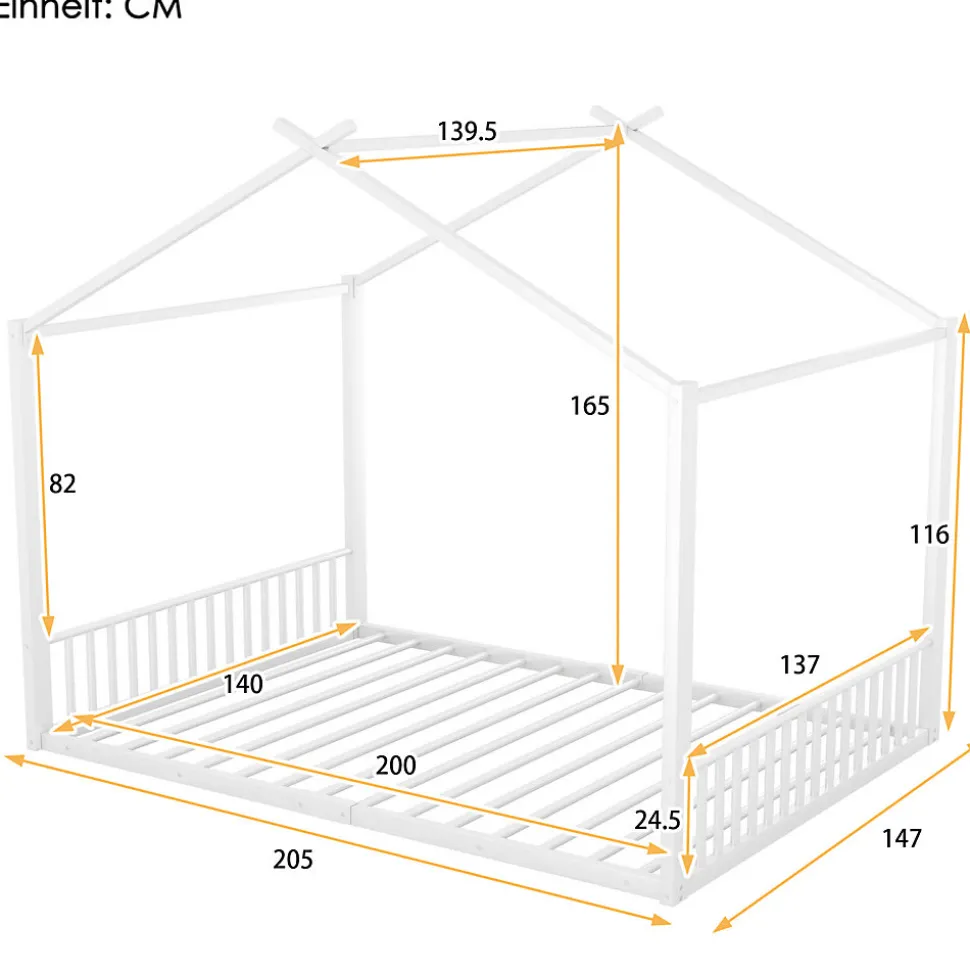 Lit bébé 140×200 cm – Métal avec design maison – BlancApportez confort, sécurité et style à la chambre de votre enfant avec ce lit bébé au design unique en forme de maison. Robuste et élégant, il allie sécurité, durabilité et esthétique moderne pour créer un espace de sommeil sûr et agréable.Caractéristiques principales :Matériaux de haute qualité : Structure en métal et panneaux MDF garantissant solidité, stabilité et sécurité pour votre enfant.Design original en forme de maison : La partie supérieure du lit reproduit une maison miniature, stimulant l’imagination des enfants et embellissant la chambre.Style simple et élégant : Design épuré et moderne, adaptable à tous les styles d’intérieur.Montage facile : Toutes les pièces et instructions sont fournies pour un assemblage rapide et sans stress.Entretien pratique : Design robuste et simple facilitant le nettoyage et l’entretien quotidien.Livraison depuis l’Allemagne : Expédié en un seul colis, avec possibilité d’arrivée séparée. Contactez le service client pour toute question ou assistance.Dimensions et informations supplémentaires :Dimensions totales : 205 x 147 x 165 cmDimensions intérieures : 140 x 200 cmCouleur : BlancMatériau : Métal + MDFNombre de colis : 1Montage : RequisCharge maximale : 150 kgÉpaisseur de matelas recommandée : 15-20 cmOrigine : Chine