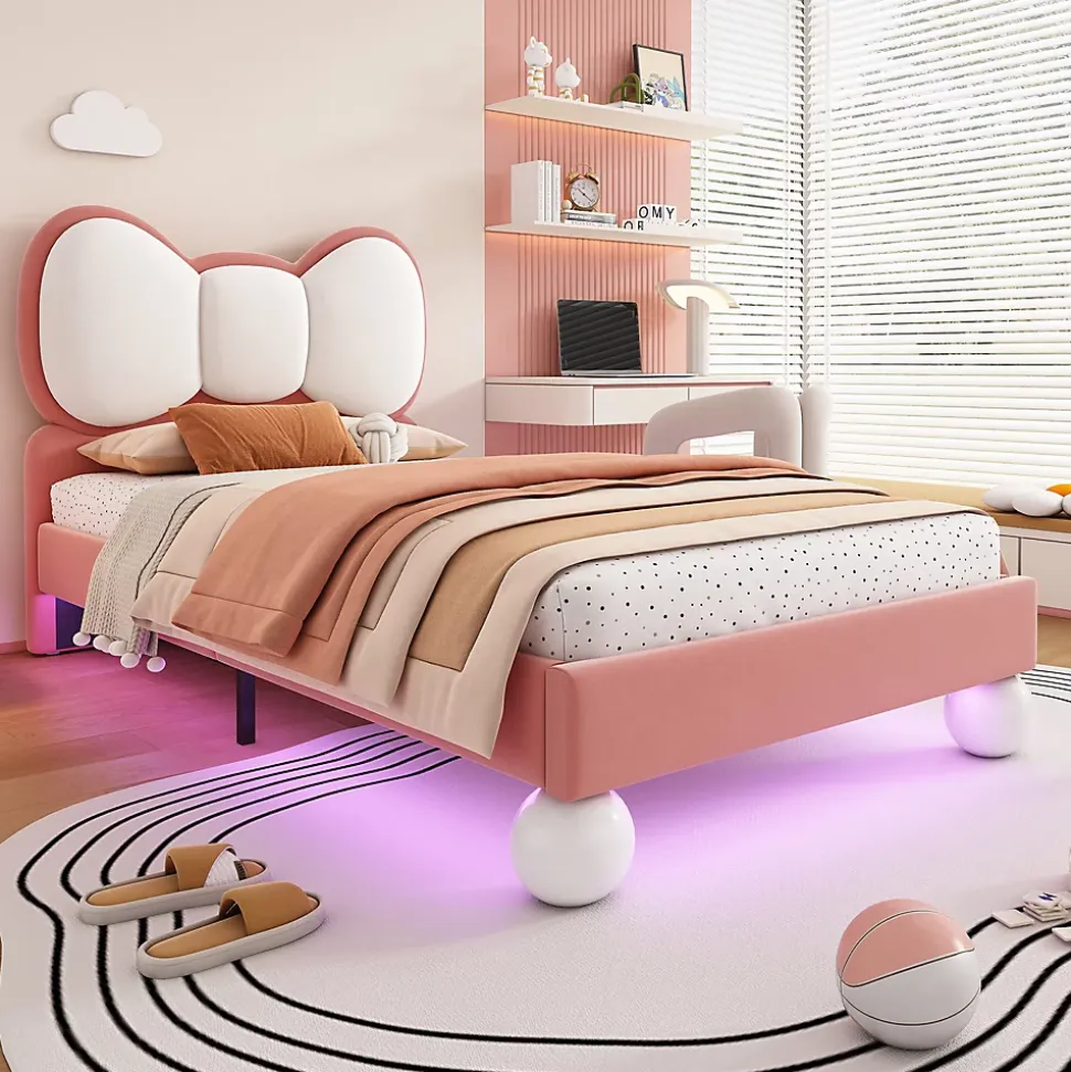 - 【Éclairage LED intégré】 La barre LED sous le lit fournit une lumière douce et réglable en couleur, créant une ambiance chaleureuse et apaisante idéale pour le coucher ou les moments de jeu, contribuant ainsi à une atmosphère calme et réconfortante.
