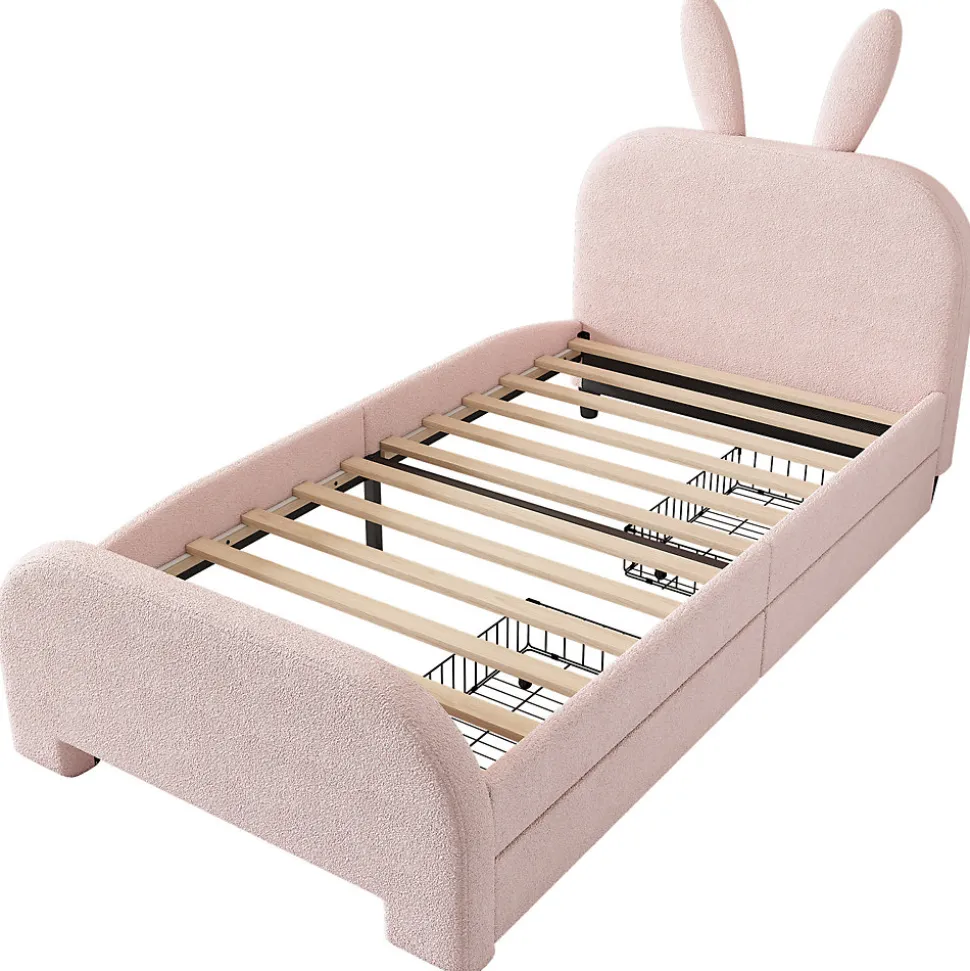 1. Matériaux de haute qualité : Ce lit combine deux matériaux de haute qualité : la laine d’agneau et le MDF. Douce, agréable au toucher et chaude, la laine d’agneau crée un environnement de sommeil douillet pour les enfants. Le MDF assure la robustesse et la durabilité du cadre de lit, tandis que sa surface lisse et plane facilite le nettoyage et l’entretien. 2. Adorable motif de lapin : La tête de lit arbore un motif de lapin. La matière douce et moelleuse offre un toucher délicat, plongeant les enfants dans un univers féérique. Ce motif, très apprécié des enfants, favorise également l’endormissement et des rêves paisibles. 3. Tiroirs de rangement pratiques : Deux tiroirs situés sous le lit peuvent être installés à gauche ou à droite, permettant aux enfants de ranger facilement leurs jouets, livres et autres affaires. Ce système optimise l’espace et encourage le rangement, pour une chambre plus propre et mieux organisée. 4. Tête de lit rembourrée : La tête de lit est dotée d’un rembourrage souple qui améliore le confort et la sécurité. Les enfants n’ont plus à craindre de se cogner contre la tête de lit rigide en jouant ou en se reposant, ce qui leur offre une protection optimale. 5. Votre colis est expédié d’Allemagne. La livraison peut prendre un certain temps, mais nous mettons tout en œuvre pour que vous soyez pleinement satisfait(e). Merci de votre patience. N’hésitez pas à contacter notre service client. Poids et dimensions : Matériaux du lit : Peluche et MDF Dimensions : 90 x 200 cm Couleur : Rose Nombre de colis : 1 Montage requis : Oui Origine : Chine Dimensions du produit : 213 x 101 x 116 cm Dimensions du colis : Voir les spécifications Dimensions intérieures du lit : 90 x 200 cm Hauteur totale : 116 cm Charge maximale : 150 kg Nombre de sommiers à lattes : 12 Épaisseur de matelas recommandée : 15-20 cm