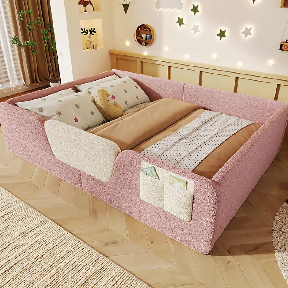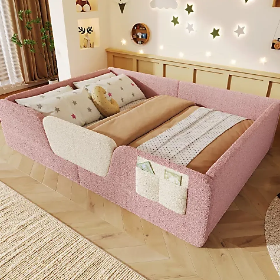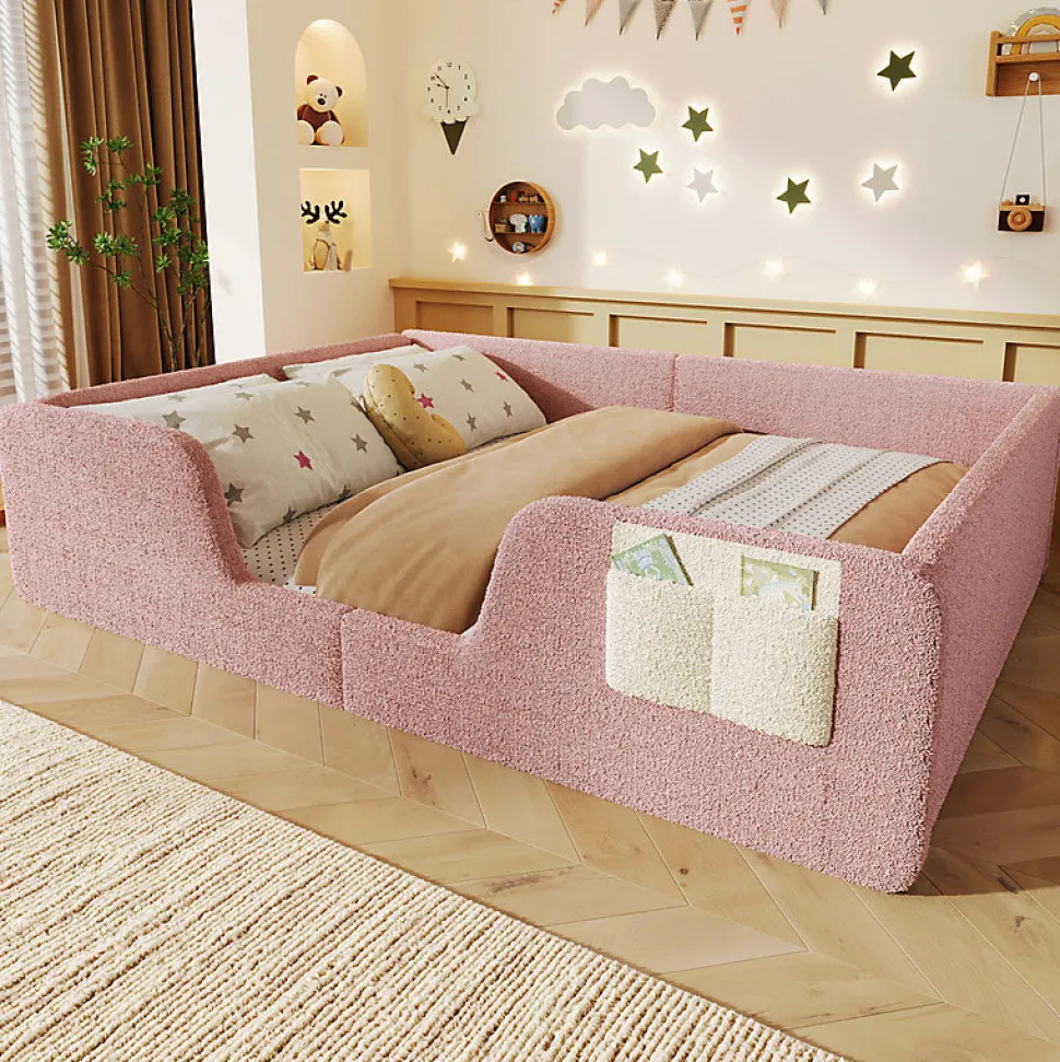 •【Tissu velours unique】Ce lit est revêtu d’un tissu velours unique, d’une douceur incomparable. Sa texture unique offre à votre enfant un sommeil des plus paisibles.•【Barrières latérales amovibles】Les barrières latérales sont amovibles et réglables pour créer un espace de couchage modulable et adapté à votre enfant.•【Poches de rangement intégrées】De petites poches en tissu sont prévues sur les côtés du lit pour ranger facilement les affaires de votre enfant et l’aider à prendre de bonnes habitudes.•【Rembourrage de sécurité】Les barrières latérales rembourrées et confortables assurent une sécurité optimale à votre enfant, garantissant un sommeil paisible et une tranquillité d’esprit aux parents.•【Facile à assembler】Des instructions détaillées et des pièces complètes sont disponibles pour vous aider à réaliser l’assemblage rapidement.