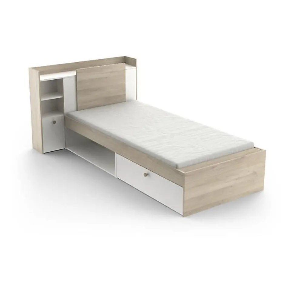Lit enfant avec rangements Life – 90X190/200 – Décor Chene/blanc – DEMEYERE
