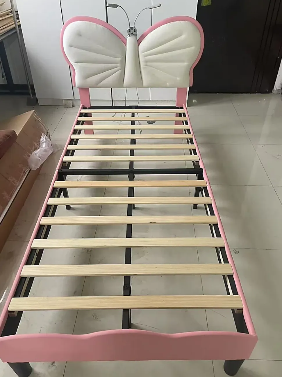 Description produit :Ce lit innovant allie confort, praticité et esthétique moderne avec sa tête de lit en forme de papillon et ses fonctionnalités technologiques. Le design unique et les lumières LED créent une atmosphère chaleureuse et accueillante, parfaite pour une chambre à coucher moderne.Caractéristiques principales :Tête de lit en forme de papillon avec LED :La tête de lit présente un design élégant en forme de papillon. Elle est équipée d’un éclairage LED intégré pour la lecture, remplaçant les « antennes » du papillon, apportant ainsi une touche de décoration originale et fonctionnelle.Éclairage LED changeant :Le lit est équipé de bandes LED sous la tête de lit et sous le cadre. Ces lumières peuvent être contrôlées via une télécommande pour ajuster la couleur, la luminosité et la vitesse de l’éclairage. Vous pouvez ainsi créer l’ambiance parfaite pour vous détendre ou lire.Matériau PU de haute qualité :Le lit est recouvert de PU (similicuir), un matériau résistant et facile à entretenir. Il offre des propriétés imperméables, vous facilitant ainsi le nettoyage quotidien, tout en conservant un aspect élégant et moderne.Hauteur réglable :Le lit dispose d’une hauteur ajustable, permettant de régler la hauteur totale entre 123 cm et 129 cm, en fonction de vos préférences et de la taille de votre matelas (15 à 25 cm). Cela permet d’assurer un confort optimal pour chaque utilisateur.Assemblage facile :Ce lit est conçu pour être facile à assembler. Il est livré avec des instructions détaillées et simples, permettant un montage rapide et sans difficulté. Vous pourrez ainsi profiter rapidement de votre nouveau lit.Dimensions :Hauteur totale : Réglable entre 123 cm et 129 cmTaille du matelas : Compatible avec les matelas standard de 15 à 25 cm de hauteurCouleurs disponibles :BlancCrèmeNoir