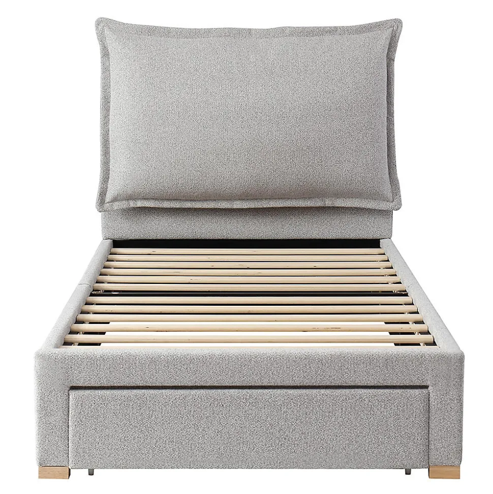 Caractéristiques du produitDimensions du produitLongueur assemblé (cm) : 215,00Largeur assemblé (cm) : 97,50Hauteur assemblé (cm) : 98,50Poids du produit (kg) : 33,40Dimensions de l’emballageSous-article 1 : 101,19 * 31,98 * 27,79 cm 20,5 kgSous-article 2 : 100,08 * 73,08 * 11,1 cm 17,2 kgInformations sur le produitCouleur principale : grisMatériau principal : chenilleType de sommier Un sommier à lattes est inclus dans la livraisonType de matelas Sans matelasDétails Espaces de rangement TiroirRemarque Dimensions Toutes les dimensions sont approximativesCapacité de charge maximale 150 kgRevêtement ChenilleÉtat à la livraison Démonté, 2 colis Ce produit est livré en 2 colis. Il est possible qu’ils n’arrivent pas en même temps. Veuillez patienter.