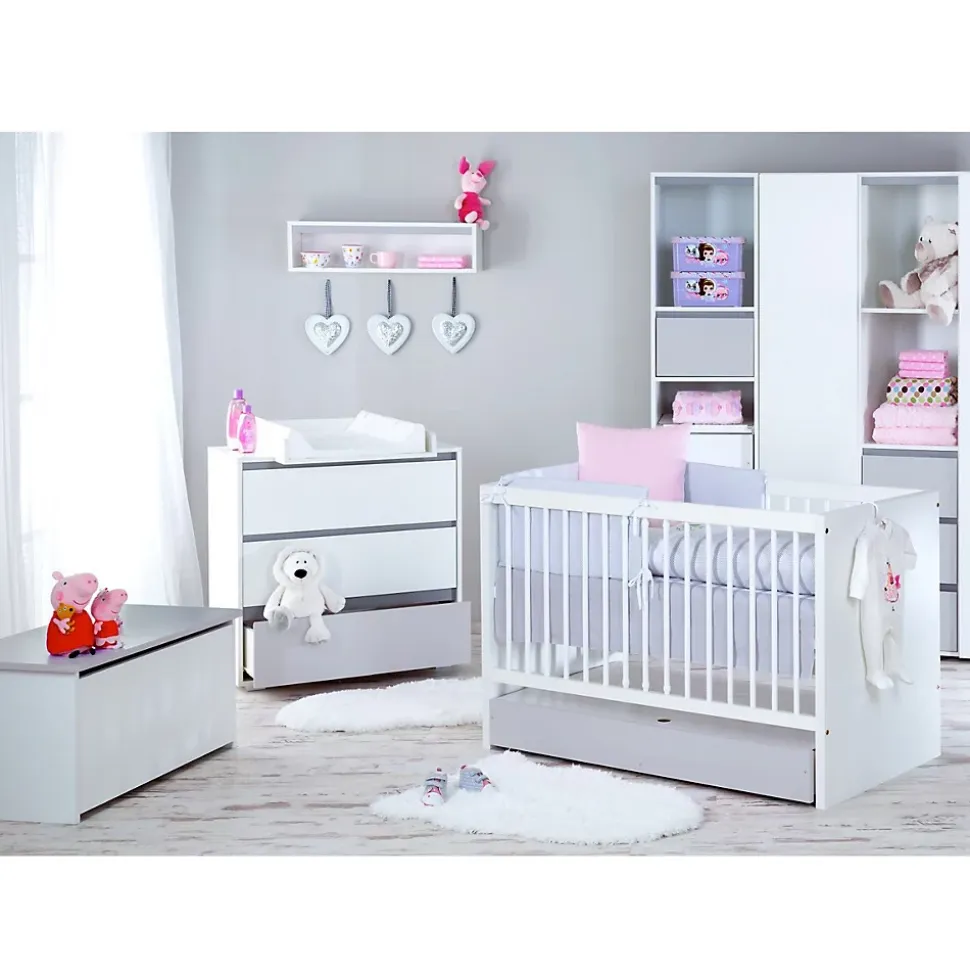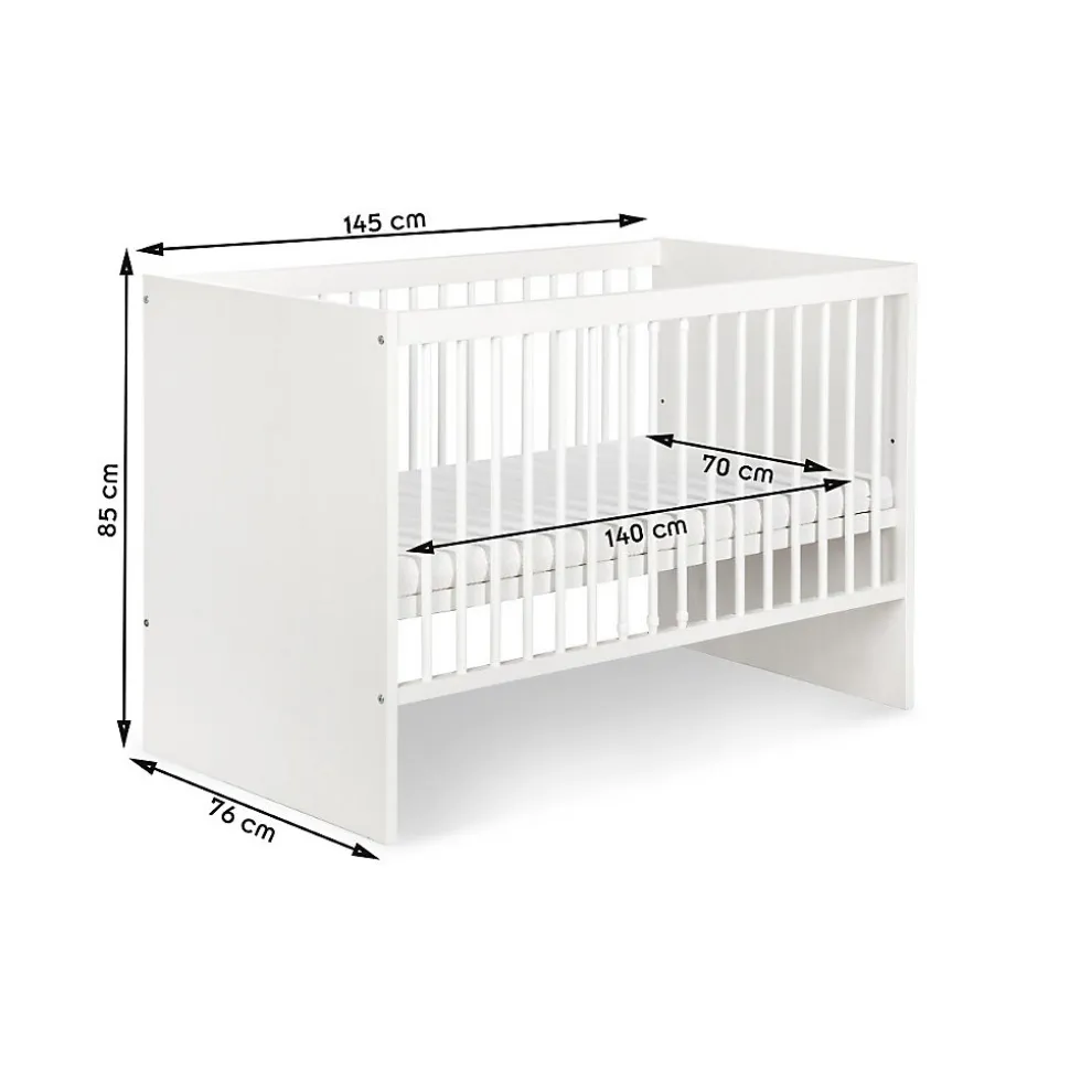 DALIA Lit évolutif bébé convertible en lit enfant Dès la naissance. Modèle avec ou sans tiroir gris. CARACTÉRISTIQUES : Pratique, ce lit évolutif convertible grandit en même temps que votre enfant. Son sommier réglable sur 3 positions permet d’adapter sa hauteur à la croissance de l’enfant. Avec ses 3 barreaux amovibles, l’enfant peut se lever et se coucher seul, premiers pas vers l’autonomie. Lorsque l’enfant est prêt à quitter son petit nid, c’est le moment de moduler son lit. Les côtés à barreaux laissent la place à 2 côtés avec des pans de sécurité. Les parois latérales se rabaissent. Le lit > est ainsi prêt pour l’accompagner pendant de nombreuses années. Ce lit est disponible avec ou sans tiroir gris. Matériau : bois de pin + MDF. Fabriqué en Union Européenne. À monter. Matelas non inclus. DIMENSIONS ET POIDS : Dimensions extérieures du lit : L 145 cm x l 76 cm x H 85 cm. Dimensions intérieures du lit : L 140 cm x l 70 cm. Dimensions du tiroir : L 139 cm x l 74 cm x H 17 cm. À NOTER : pas de livraison en Corse ou sur les îles.