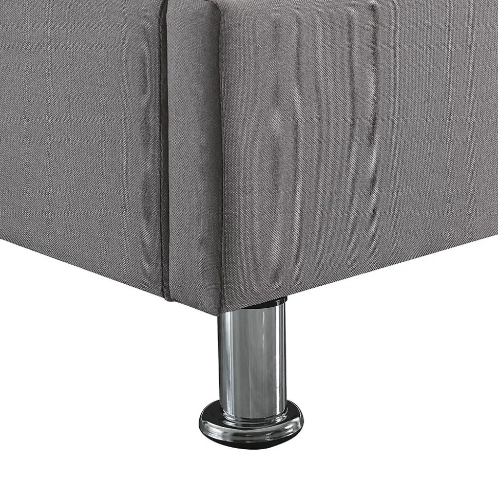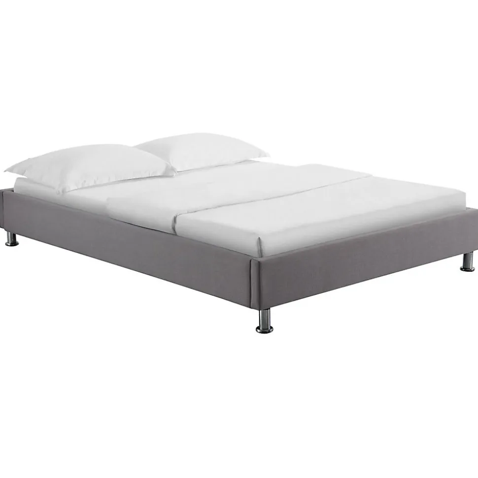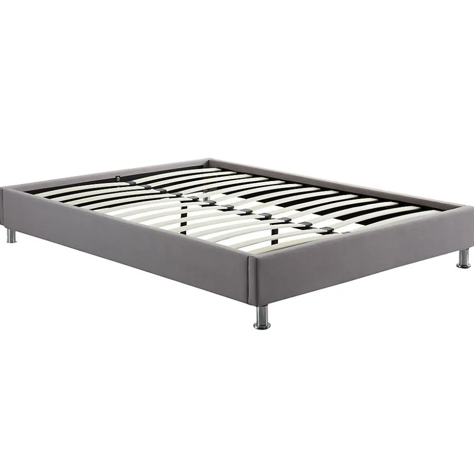 - Lit double couchage de 140 x 190 cm avec sommier à lattes et revêtement en tissu de coloris gris