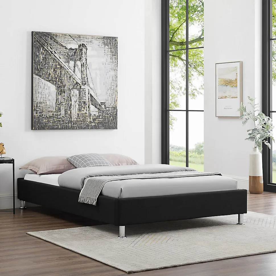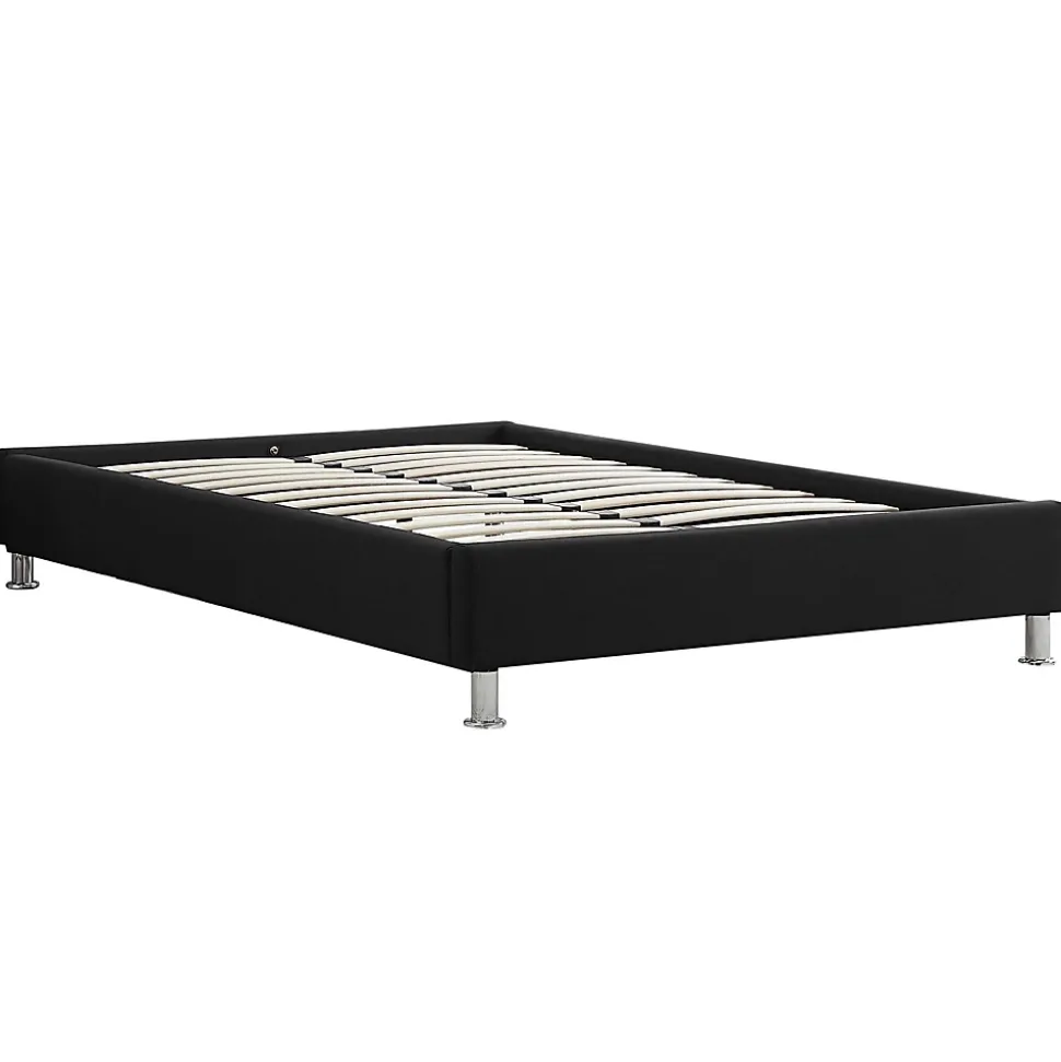 - Petit lit double couchage de 120 x 190 cm avec sommier à lattes et revêtement en tissu de coloris noir