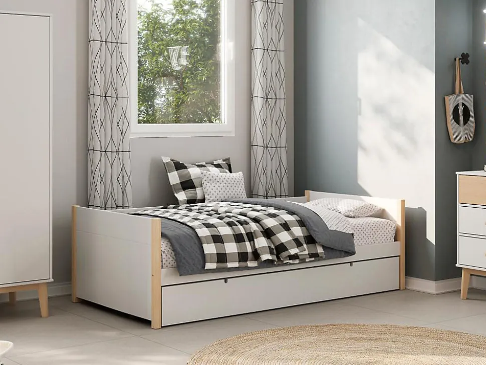 - Lit gigogne Pin, Mdf, Bois, Métal, Panneau et dérivés de bois Naturel clair, Blanc