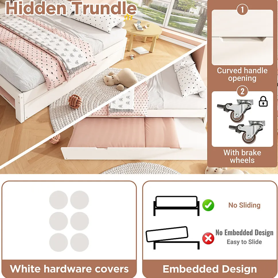 ▶ ▶ Détails ▶────────────────✦ Type de produit : Lit gigogne✦ Couleur : Blanc✦ Matériau : MDF + contreplaqué + panneaux de particules✦ Dimensions du lit : 140 × 190 cm✦ Dimensions du produit : 198 × 170 × 100 cm✦ Poids net : 64,8 kg✦ Capacité maximale (lit) : 150 kg✦ Matelas inclus : Non✦ Épaisseur recommandée du matelas : 10–13 cm✦ Nombre de colis : 3✦ Montage requis : Oui► Remarques ►※ Ce produit est livré en 3 colis, qui peuvent arriver à des moments différents.※ En raison de mesures manuelles, un écart de 2–3 cm peut se produire.※ Les images du produit sont prises avec le produit réel, mais des variations de couleur peuvent se produire en fonction de l’éclairage.