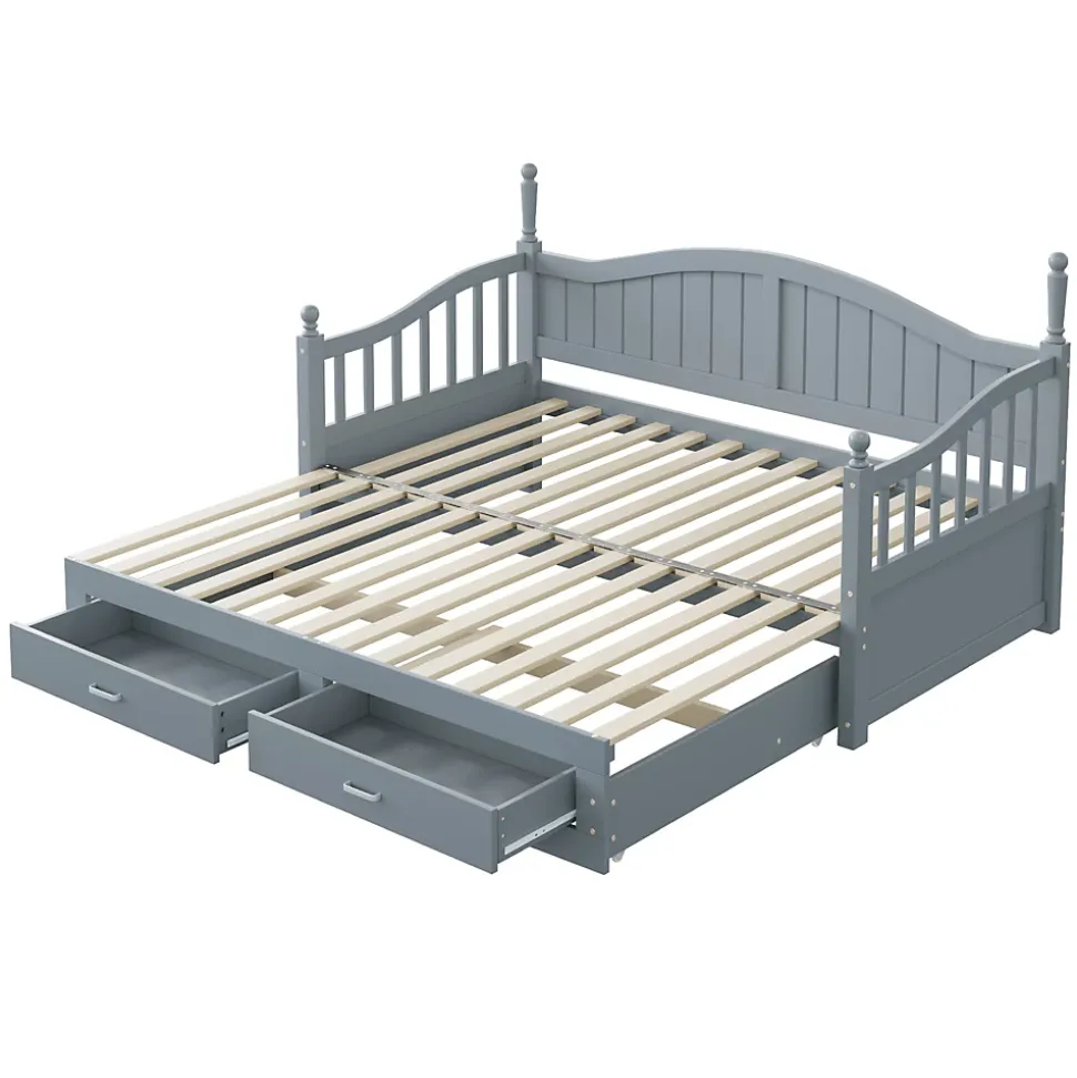 ▶ ▶ Détails ▶────────────────● Dimensions totales du produit : 197 x 97 x 95 cm● Poids total du produit : 43 kg● Capacité de poids : 150 kg● Matelas recommandé : 6-10 cm (matelas non inclus)● Type de produit : Lits gigognes● Dimensions du lit plus petit : 90 x 190 cm● Dimensions du lit complet : 180 x 190 cm● Couleur : Gris● Matériau : Pin + Contreplaqué + MDF● Montage : Montage complet requis / Montage partiel● Nombre de lattes : 27● Temps estimé de montage : 1 heure● Personnes recommandées pour l’assemblage : 2● Outils nécessaires : Tous les outils sont inclus (tournevis). Aucun outil électrique nécessaire.► Remarques ►※ Ce produit est livré en 2 colis. Ils peuvent arriver à des moments différents. Merci de patienter.※ En raison des mesures manuelles, un écart de 2 à 3 cm peut se produire.※ Les images du produit ont été prises avec le produit réel, mais en raison de l’éclairage et d’autres facteurs, des différences de couleur peuvent apparaître.※ Si vous avez des questions lors de l’installation, veuillez nous contacter rapidement.