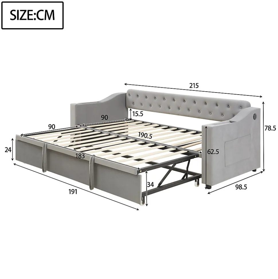 ▶ ▶ Détails ▶────────────────● Nom du produit : Lit gigogne● Couleur : Gris● Dimensions totales du produit : 215 x 98,5 x 78,5 cm● Dimensions détaillées : Veuillez consulter l’image des dimensions● Nombre de colis : 2● Poids total du produit : 54 kg● Capacité de charge : 300 kg● Épaisseur de matelas recommandée (sans matelas) : 12-14 cm (90 x 190 cm)● Épaisseur de matelas recommandée pour le lit extensible : 8-10 cm (90 x 190 cm)● Type de produit : Lit rembourré● Taille : 90 x 190 cm● Matériaux : Tissu en velours + Métal + Contreplaqué + MDF● Nombre de lattes : 22● Niveau de montage : Montage complet requis / Montage partiel● Temps de montage estimé : 1 heure● Nombre de personnes recommandé : 2● Outils supplémentaires requis : Tous les outils inclus / Tournevis● Évitez l’utilisation d’outils électriques : Oui● Poids total du colis : 58 kg► Remarques ►※ Ce produit est expédié en 2 colis. Ils peuvent arriver séparément. Veuillez patienter.※ En raison de la mesure manuelle, une erreur de 2 à 3 cm peut se produire.※ Toutes les images des produits sont prises à partir d’articles réels, mais en raison de la lumière du soleil et d’autres facteurs, de légères différences de couleur peuvent apparaître.※ Si vous avez des questions pendant l’installation, veuillez nous contacter dès que possible.