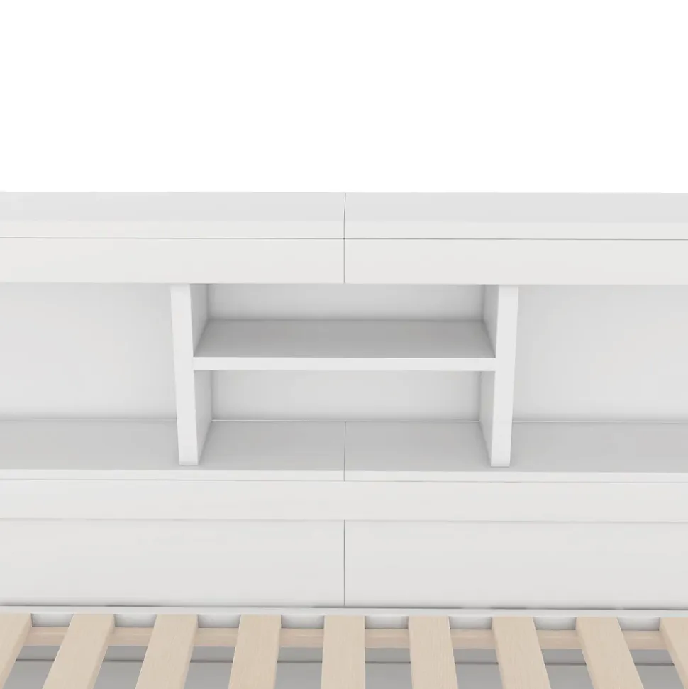 ▶ ▶ Détails────────────────● Dimensions totales : 205 x 153,5 x 166 cm● Poids total : 89 kg● Dimensions des matelas compatibles : 90 x 200 cm (matelas non inclus, épaisseur maximale ≤ 12 cm)● Capacité maximale du lit : 150 kg● Couleur : Blanc + Naturel● Matériau du cadre : Pin + MDF + Contreplaqué● Matériau des lattes : Bois● Montage : Installation autonome requise● Nombre de colis : 4► Remarques※ Ce produit sera expédié en 4 colis, qui peuvent ne pas arriver en même temps. Merci de patienter.※ En raison des mesures manuelles, des écarts de 2-3 cm peuvent survenir.※ Toutes les photos du produit ont été prises avec les articles réels, mais en raison de l’influence de la lumière et d’autres facteurs, il peut y avoir de légères différences de couleur.※ Si vous avez des questions pendant l’installation, n’hésitez pas à nous contacter rapidement.