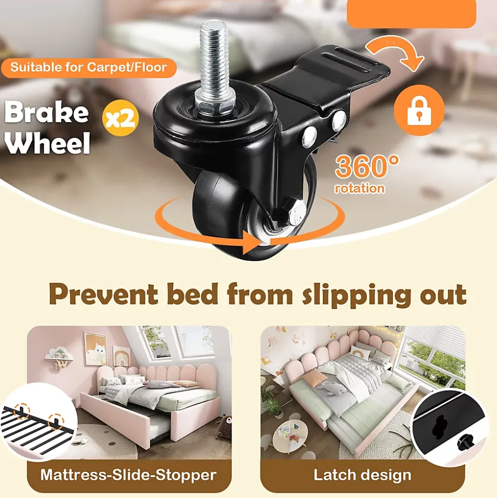 - 【Sécurité et Fixation】 Les attaches latérales maintiennent le lit en place lorsqu’il n’est pas utilisé, tandis que les roulettes avec frein assurent une manipulation sûre et un espace de sommeil stable pour tous.