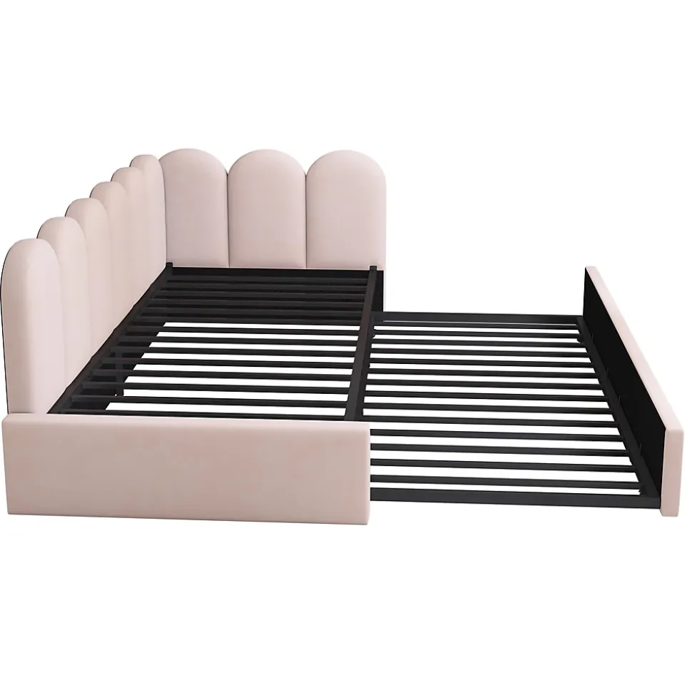 ▶ ▶ Détails ▶────────────────● Dimensions totales : 203 x 97 x 76 cm● Matériau : Velours + Métal + Contreplaqué● Couleur : Rose● Montage requis : Oui● Contenu de l’emballage : Lit principal + Lit gigogne● Capacité de charge maximale : 272 kg● Poids brut / net : 37,1 / 32 kg● Nombre de colis : 2●● Matelas ●●● Matelas applicable (lit principal) : 90 x 200 cm● Matelas applicable (lit gigogne) : 90 x 190 cm● Épaisseur recommandée du matelas : 15 cm► Remarques ►※ Ce produit est livré en 2 colis, qui peuvent arriver séparément. Merci de votre patience.※ En raison de la mesure manuelle, une erreur de 2 à 3 cm peut se produire.※ Toutes les images du produit sont prises à partir du produit réel, mais des différences de couleur peuvent survenir à cause de la lumière ou d’autres facteurs.※ La longueur correspond à l’avant et la largeur aux côtés. La taille exacte dépend de l’image.