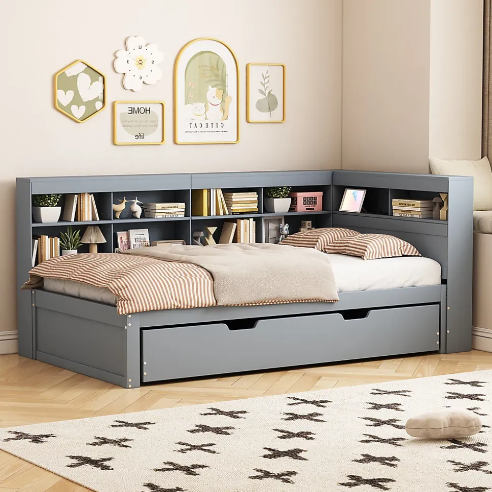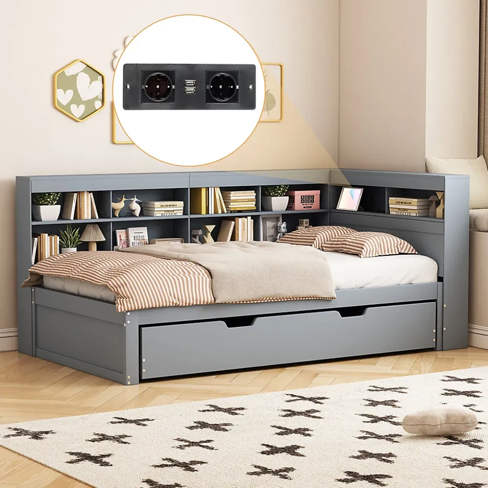 ▶ ▶ Détails ▶────────────────● Dimensions totales du produit : 222,5 x 116 x 92,5 cm● Dimensions du lit : 90 x 200 cm + 90 x 190 cm (sans matelas)● Poids maximal supporté : 120 kg● Matériau : Bois de pin + Contreplaqué + MDF● Nombre de lattes : 26● Montage requis : Oui● Couleur : Gris● Nombre de colis : 3● Poids total du produit : 65,25 kg● Poids total du colis : 72,75 kg● Temps de montage estimé : 2 heures● Nombre de personnes recommandé : 2● Outils nécessaires : Tous les outils sont inclus (tournevis)● Évitez l’utilisation d’outils électriques : Oui► Remarques ►※ Ce produit est livré en 3 colis et peut ne pas arriver en même temps. Veuillez patienter.※ En raison des mesures manuelles, un écart de 2 à 3 cm peut se produire.※ En raison de l’éclairage, des différences de couleur peuvent apparaître entre l’image du produit et le produit réel. Veuillez vous référer au produit que vous avez reçu.※ Si vous avez des questions pendant l’installation, veuillez nous contacter dès que possible.