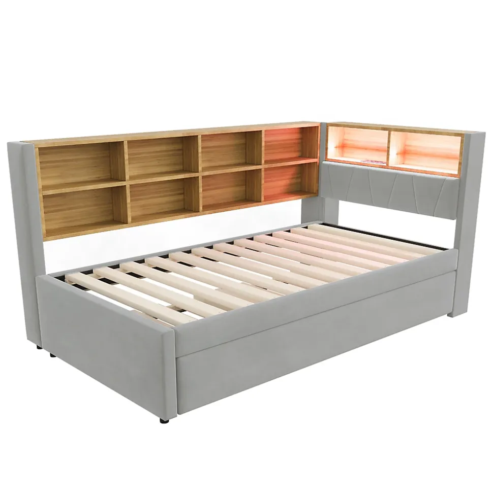 - 【Utilisation multifonctionnelle】 Ce canapé-lit offre un espace de couchage confortable tout en intégrant LED et ports de recharge (USB, Type-C, prises), permettant de détendre et recharger vos appareils simultanément.