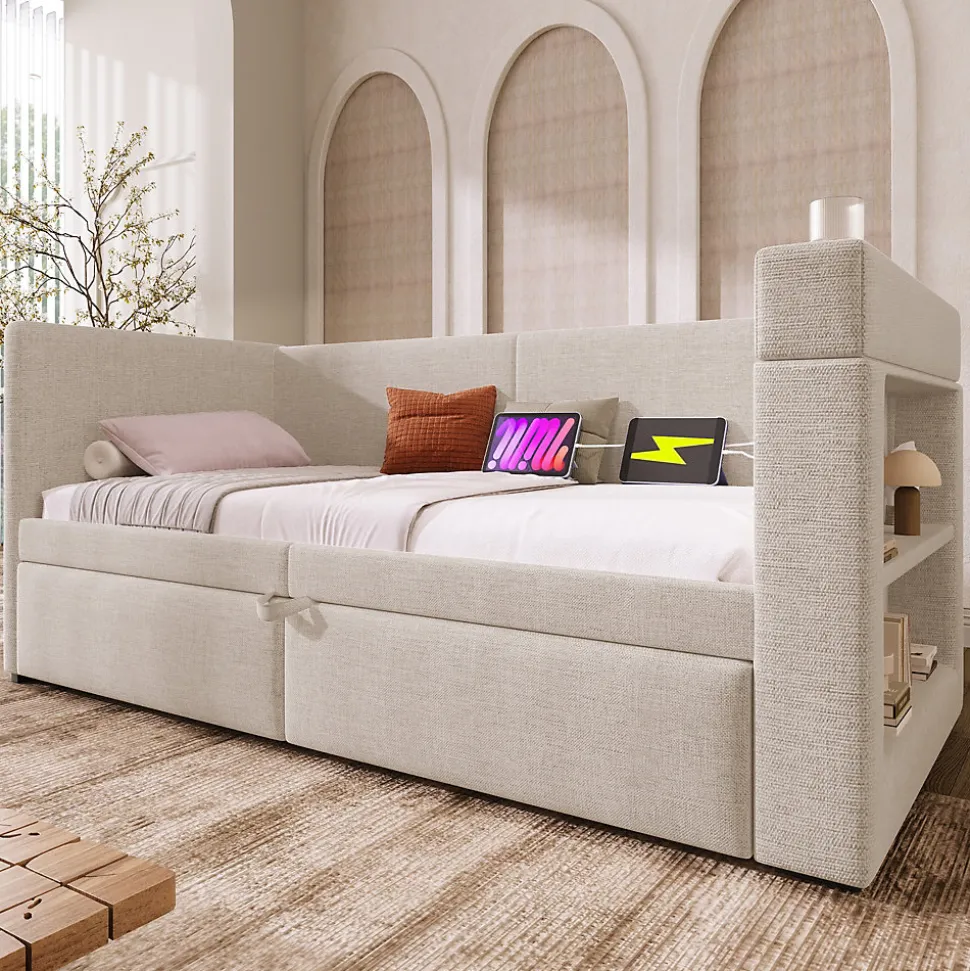 - 【Fonctionnalités intégrées】 Les accoudoirs comportent des ports USB et Type-C, un porte-gobelet et des étagères ouvertes, permettant une organisation optimale de votre espace de vie.