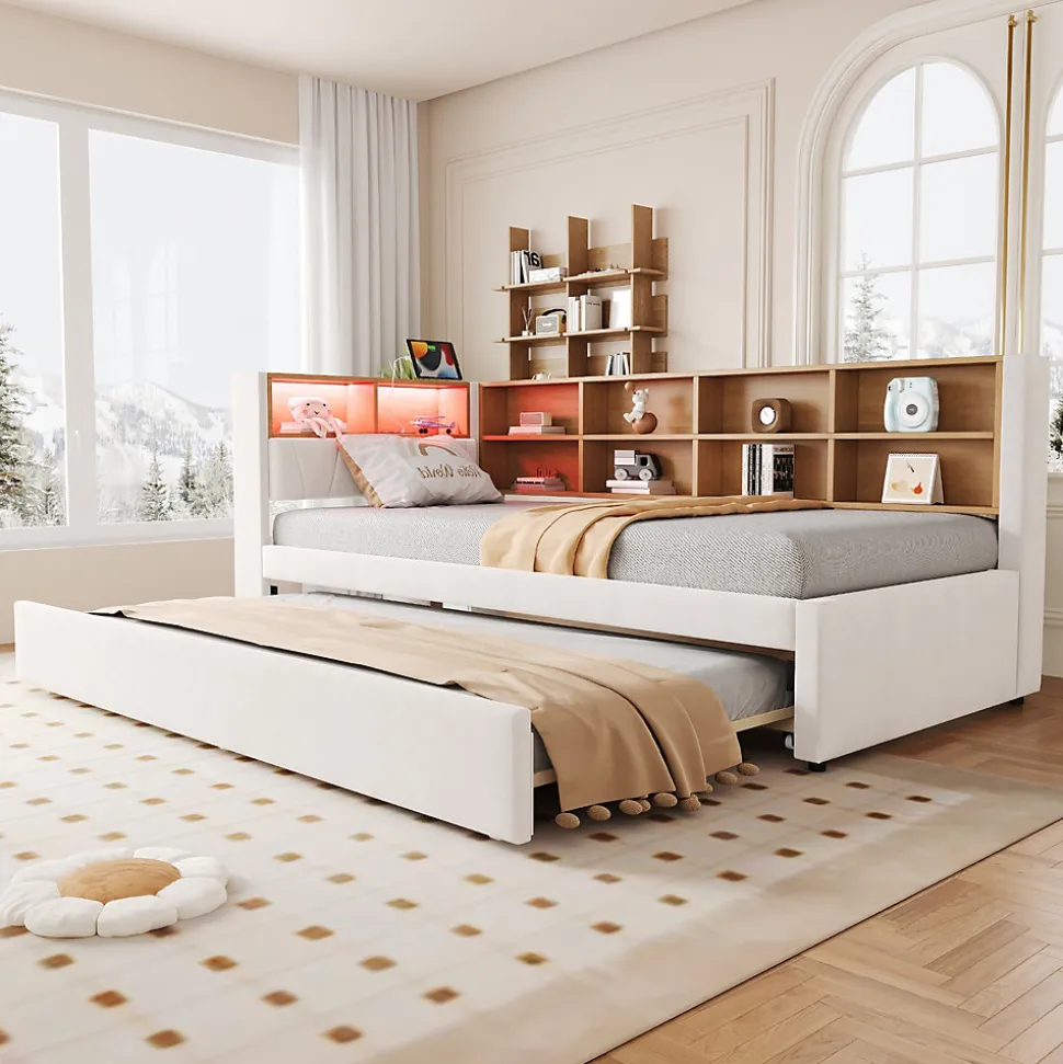 - 【Éclairage pratique et ports de charge】 L’espace de rangement intégré est équipé de lumières LED et de multiples ports de charge (USB, Type-C, prise), vous permettant de charger vos appareils facilement tout en créant une ambiance agréable et relaxante.