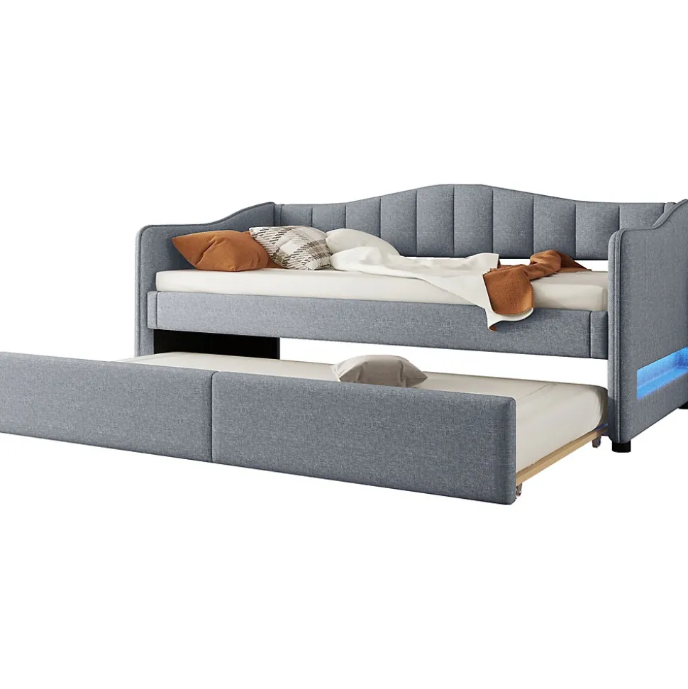 ▶ ▶ Détails ▶────────────────● Nom du produit : Canapé-lit● Dimensions du produit : 212 x 99 x 85 cm● Matériau du lit : Linen + MDF● Taille : 90 x 200 cm (sans matelas)● Couleur : Gris● Nombre de colis : 2● Montage requis : Oui● Dimensions intérieures du lit : 90 x 200 cm● Hauteur totale : 85 cm● Capacité de poids : 120 kg● Nombre de lattes : 18 pièces● Épaisseur recommandée du matelas : 10-15 cm● Dimensions intérieures du lit roulant : 90 x 200 cm (sans matelas)● Capacité de poids du lit roulant : 80 kg● Épaisseur recommandée du matelas pour le lit roulant : 10 cm► Remarques ►※ Ce produit est livré en 2 colis. Ils peuvent arriver séparément. Merci de patienter.※ En raison de mesures manuelles, une erreur de 2 à 3 cm peut survenir.※ En raison de l’éclairage, des différences de couleur peuvent apparaître entre l’image du produit et le produit réel. Merci de vous référer au produit que vous avez effectivement reçu.※ Si vous avez des questions lors de l’installation, veuillez nous contacter dès que possible.