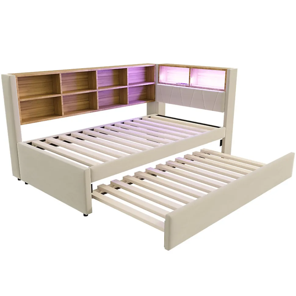 - 【Utilisation multifonctionnelle】 Ce canapé-lit offre un espace de couchage confortable tout en intégrant LED et ports de recharge (USB, Type-C, prises), permettant de détendre et recharger vos appareils simultanément.