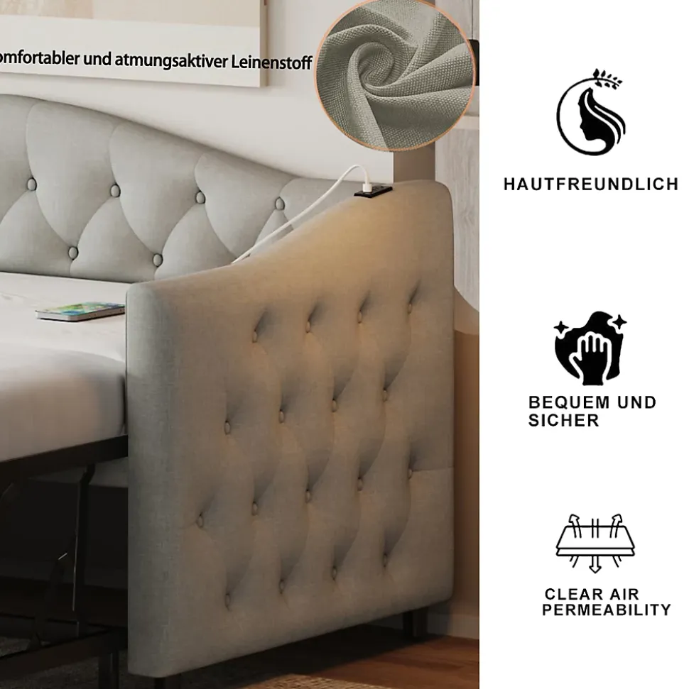 - 【Structure Robuste et Stable】 Combinant métal, contreplaqué et MDF, la structure assure un soutien fiable et un confort optimal, permettant de s’asseoir ou de dormir en toute sécurité tout en conservant une silhouette élégante.