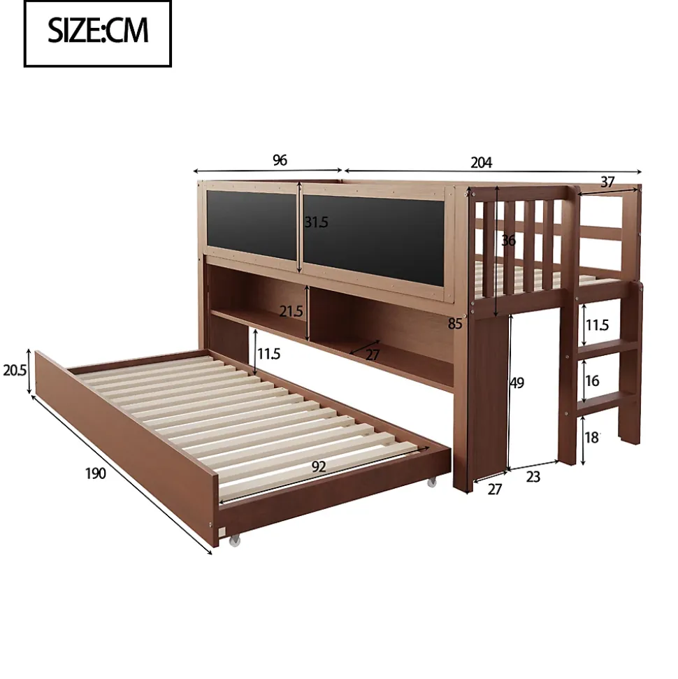 - 【Design Multifonctionnel】 Ce lit combine un espace de sommeil, un coin jeu et des solutions de rangement dans un seul meuble. Il dispose d’un lit principal, d’un lit escamotable et de compartiments ouverts pour les jouets et les livres, permettant ainsi de maximiser l’utilisation de l’espace tout en offrant de nombreuses possibilités de jeu.