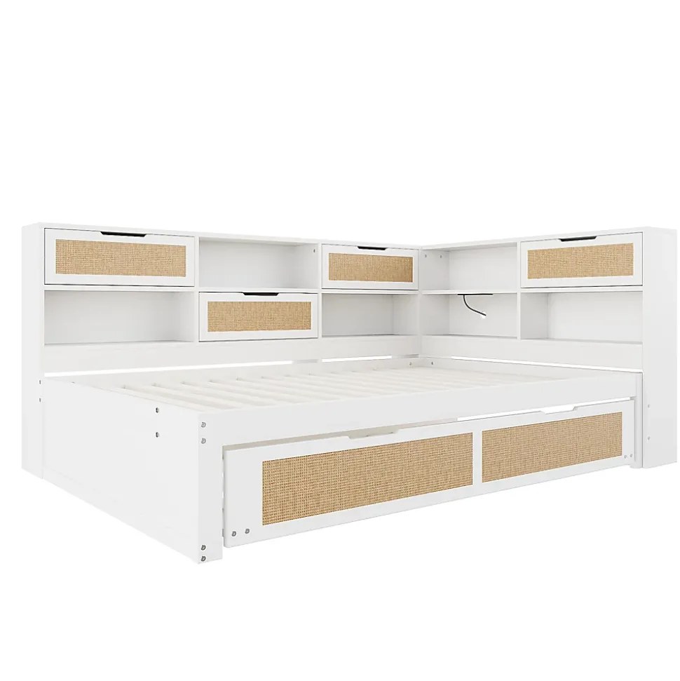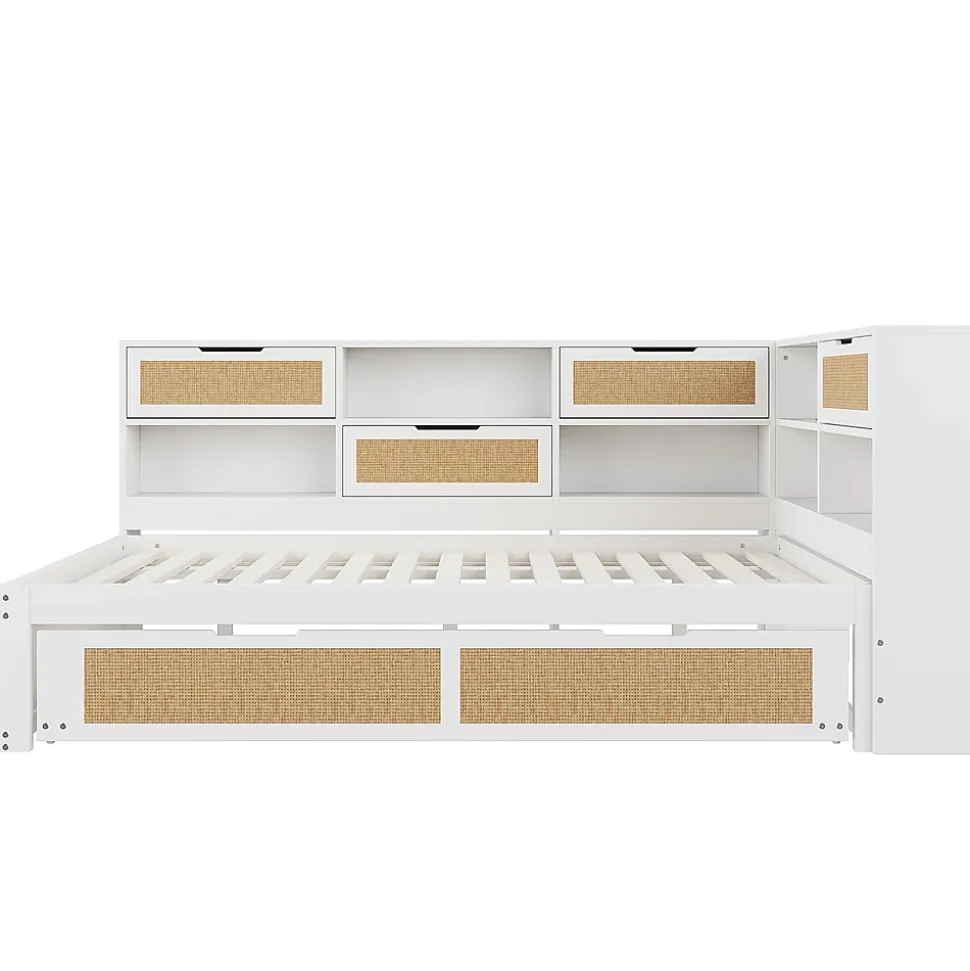 - 【Matériaux de qualité】 Le cadre en bois massif assure solidité et durabilité tout en apportant un aspect naturel, tandis que l’association de bois et d’éléments en rotin crée un design moderne et élégant qui s’intègre harmonieusement à différents intérieurs.