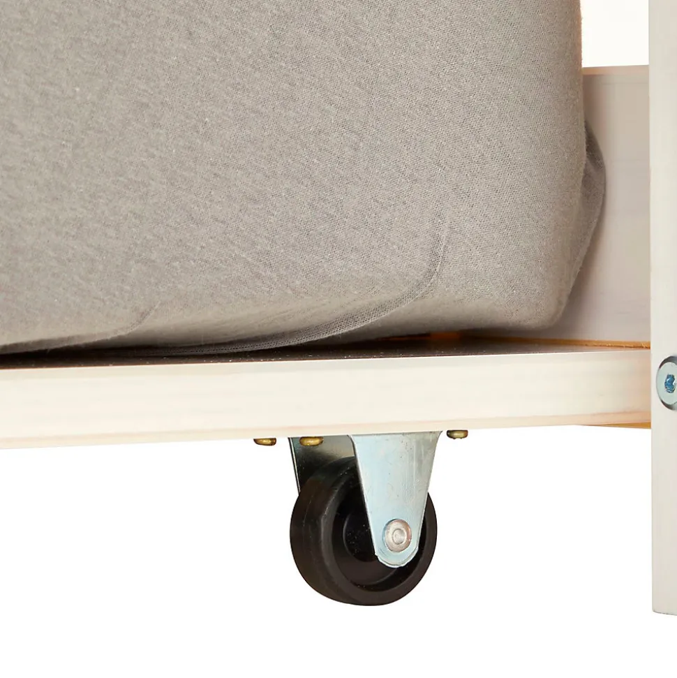 Le lit gigogne Lorena … est une vraie petite merveille. Il suffit simplement de sortir le tiroir-lit pour disposer d’un couchage supplémentaire et une fois son utilisation terminée, le tiroir se referme aussi facilement qu’il s’est ouvert afin de vous laisser plus d’espace dans votre chambre à coucher. Description des matériaux : – La structure du cadre de lit est en pin massif lasuré blanc et rose. – La tête et le pied du lit sont constitués de 2 lattes blanches en panneaux de fibres de bois de moyenne densité. – La madrure du bois reste visible. Caractéristiques du produit : – Couchages lit et tiroir-lit : 90 x 190 cm – Dimensions du tiroir-lit (L x H x P) : 188 x 24 x 94 cm – Hauteur sol-pan de lit : 34 cm – Hauteur de matelas conseillée pour le lit et le tiroir-lit : 14 cm – Adapté aux sommiers roulés Livraison et montage – Contenu de la livraison : lit gigogne, tiroir-lit, sans décoration, notice de montage – Le produit est livré en pièces détachées – Assemblage facile grâce à la notice – Sans matelas et sans sommier – Photo non contractuelle Résumé: – Hauteur pan de lit: 34 cm – Hauteur pied de lit: 48 cm – Hauteur tête de lit: 48 cm – Profondeur d’insertion: 6 cm – Convient uniquement avec: Sommier fagot à lattes – Extras: Avec tiroir-lit – Sommier: vendu séparément – Surface: Lasuré – Dimensions monté: 48 x 99 x 195 cm (H x L x L) – Couchage: 90 x 190 cm – Couleur: Blanc/Rose – Matériel: Pin semi massif