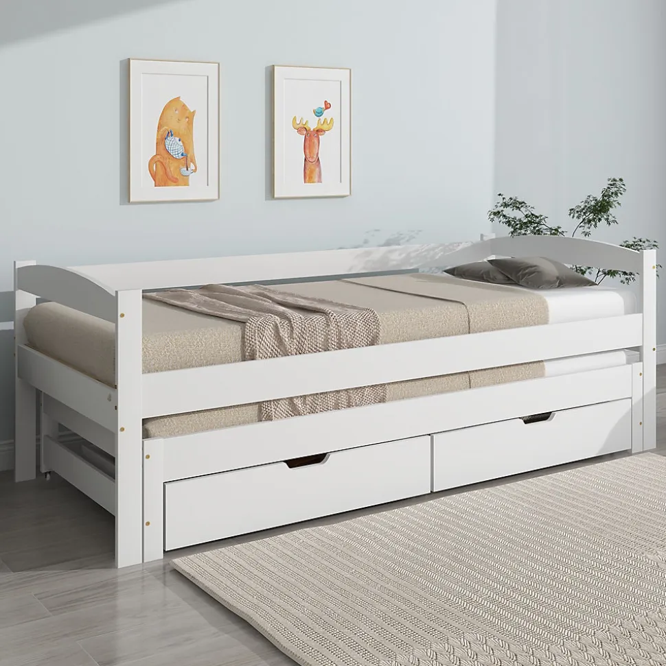 ▶ ▶ Détails ▶────────────────● Nom du produit : Lits gigogne● Couleur : Blanc● Dimensions totales : 205 x 94,5 x 70 cm● Poids total : 42 kg● Distance entre les lits : 15,5 cm● Dimensions des matelas compatibles : 200 x 90 cm (épaisseur maximale du matelas ≤ 13 cm), 190 x 90 cm (épaisseur maximale du matelas ≤ 10 cm)● Capacité de poids : 120 kg● Matériau du cadre : Pin + MDF● Matériau des lattes : Bois● Montage requis : Oui, installation par soi-même● Nombre de colis : 2► Remarques ►※ En raison de la mesure manuelle, une différence de 2 à 3 cm peut se produire.※ Toutes les images du produit ont été prises avec le produit réel. Cependant, des différences de couleur peuvent se produire en raison de l’exposition au soleil ou d’autres facteurs.※ Ce produit sera expédié en 2 colis, qui peuvent ne pas arriver en même temps. Veuillez patienter.