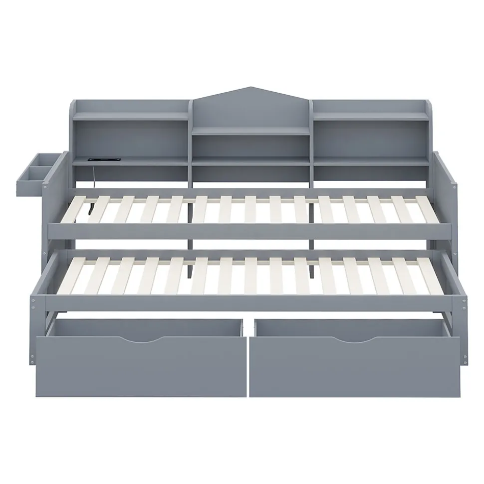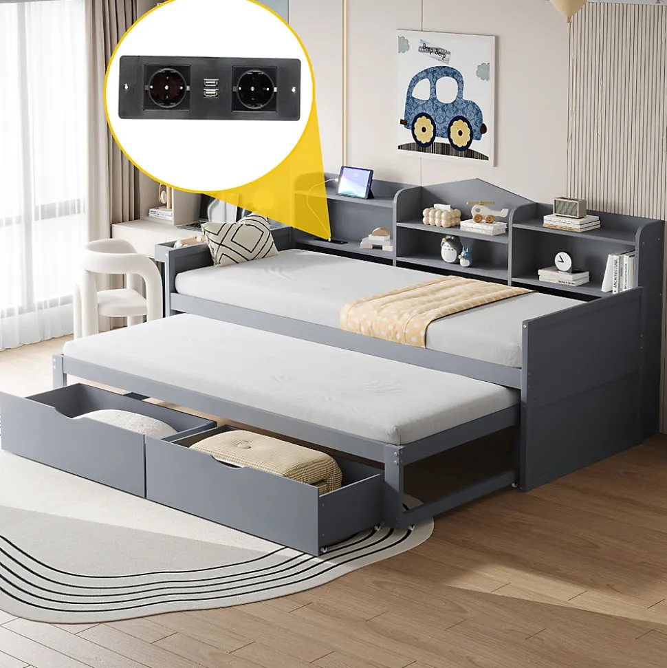 - 【Rangement Pratique】Le canapé-lit en bois massif intègre plusieurs compartiments et deux grands tiroirs, offrant un espace optimal pour ranger vos affaires et garder votre chambre organisée au quotidien.